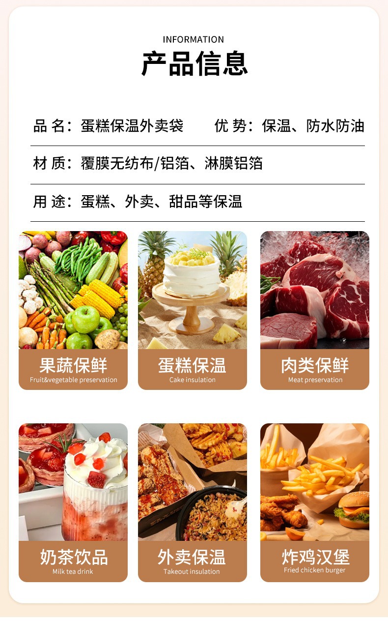입체형 케이크 보온 가방, 테이크아웃 전용 알루미늄 호일 상업용 포장, 케이터링 휴대용 일회용 포장 가방스토어 가기