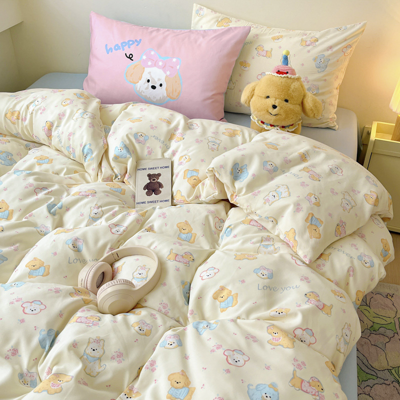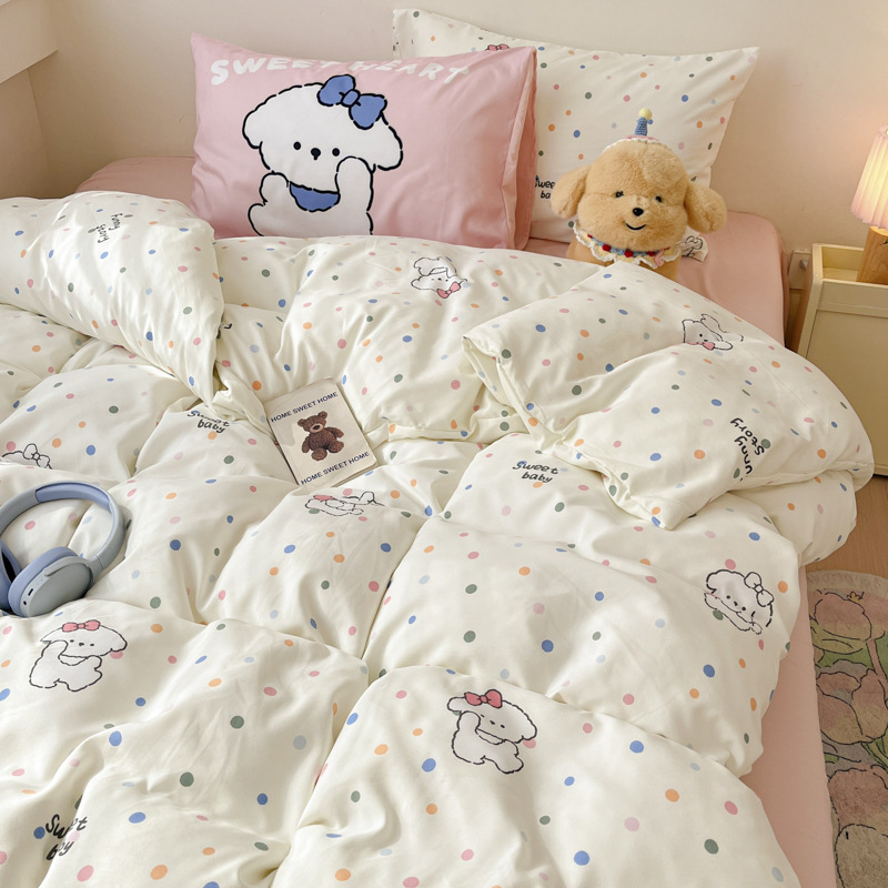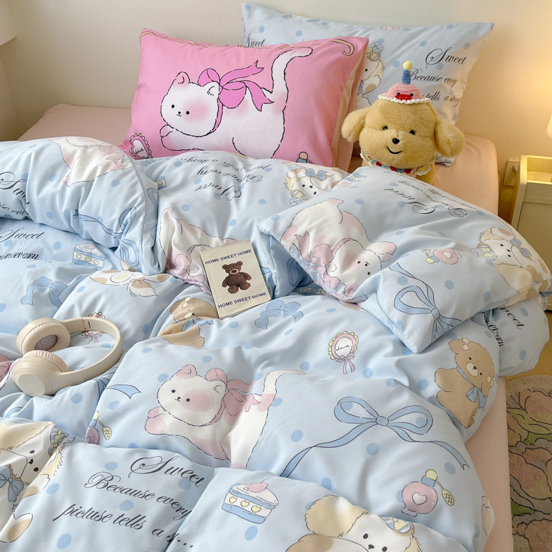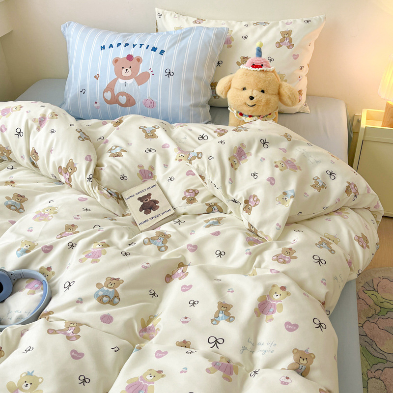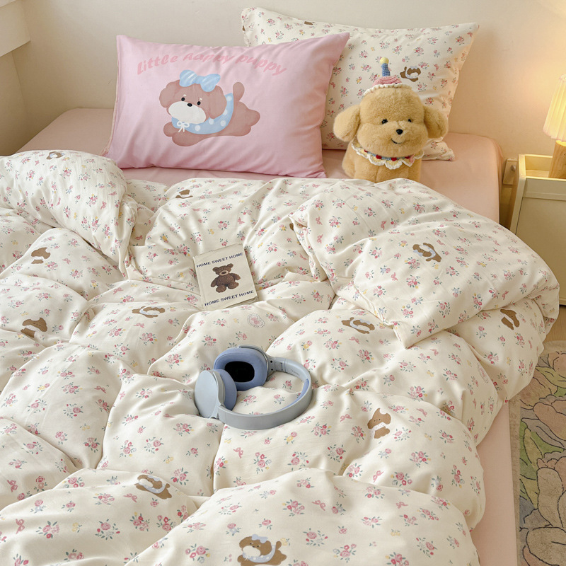 워시드 클라우드 코튼 워시드 코튼 침구 4종 세트 이불 커버 침대 시트 학생 기숙사 싱글 3종 세트 심플