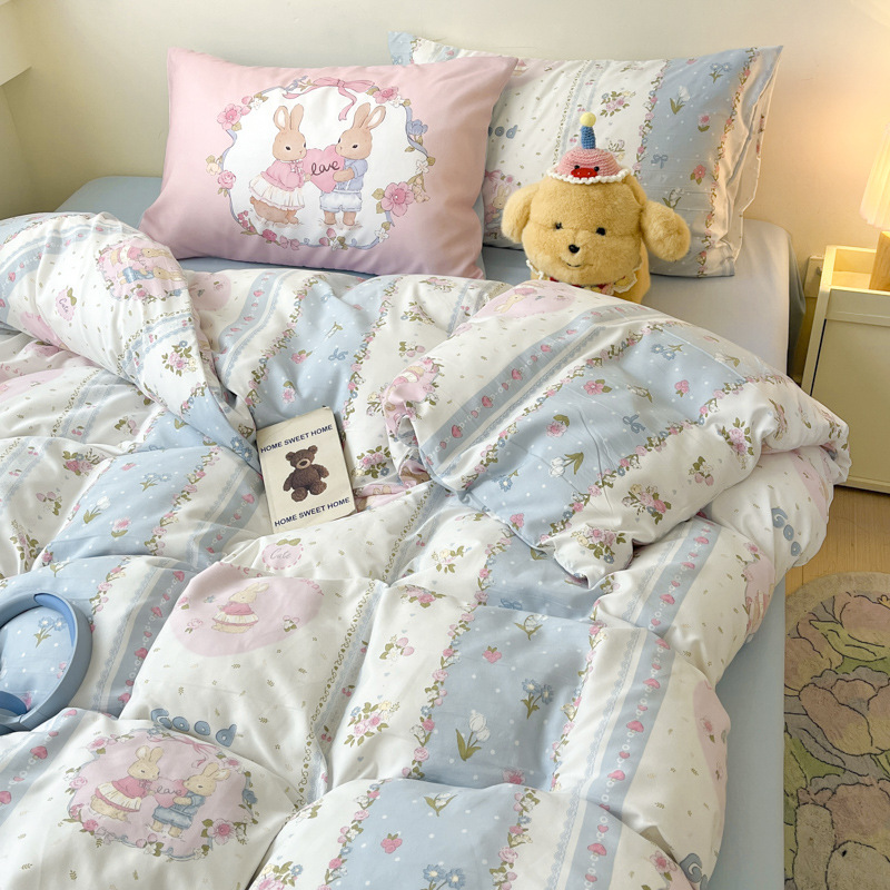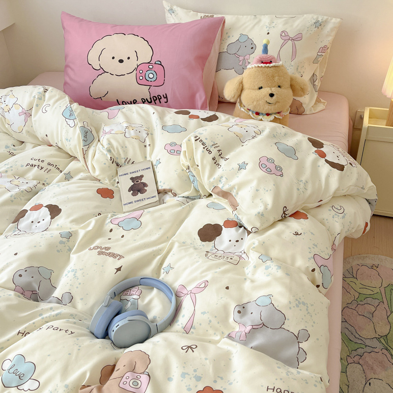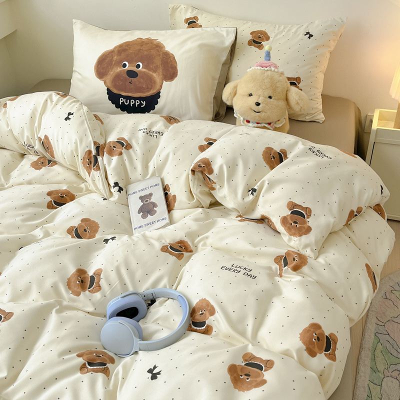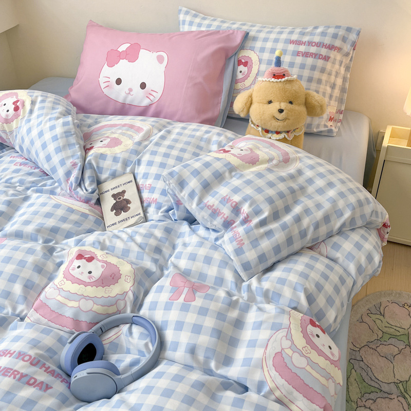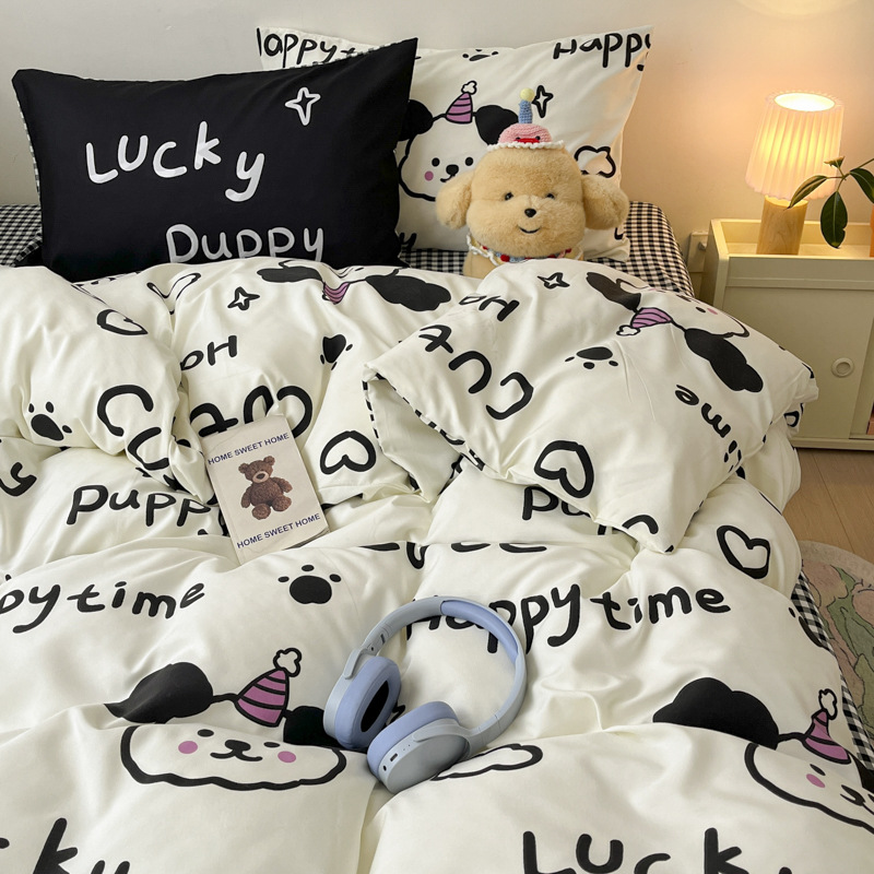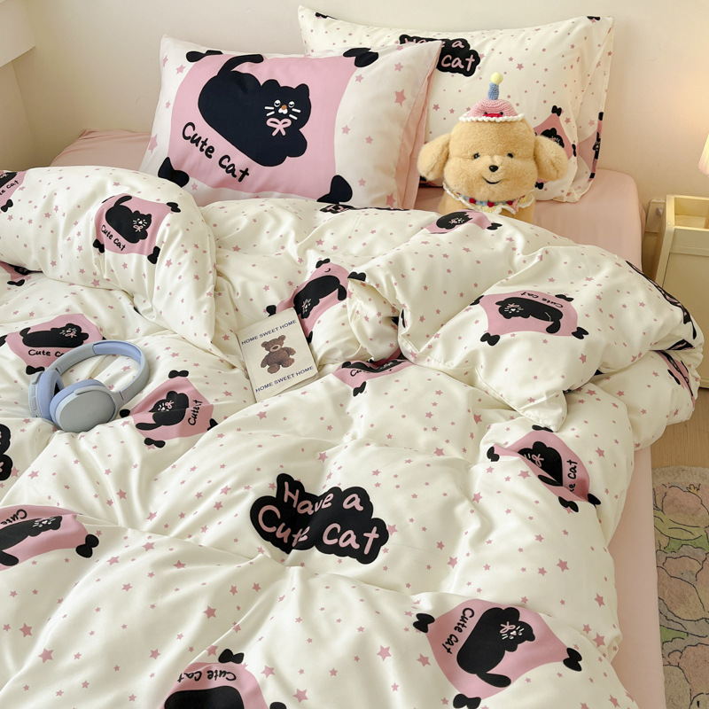 워시드 클라우드 코튼 워시드 코튼 침구 4종 세트 이불 커버 침대 시트 학생 기숙사 싱글 3종 세트 심플