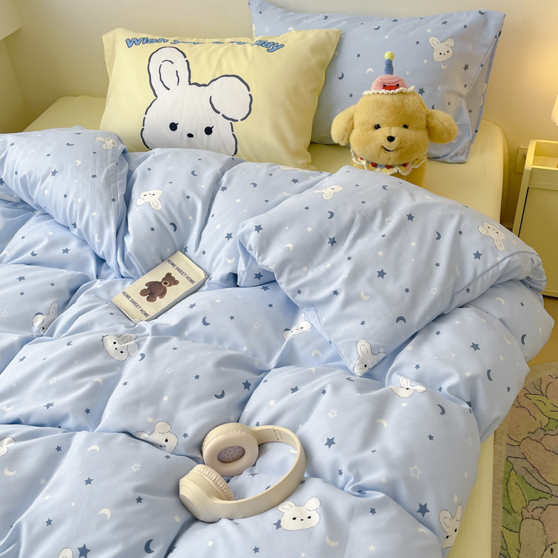 워시드 클라우드 코튼 워시드 코튼 침구 4종 세트 이불 커버 침대 시트 학생 기숙사 싱글 3종 세트 심플스토어 가기