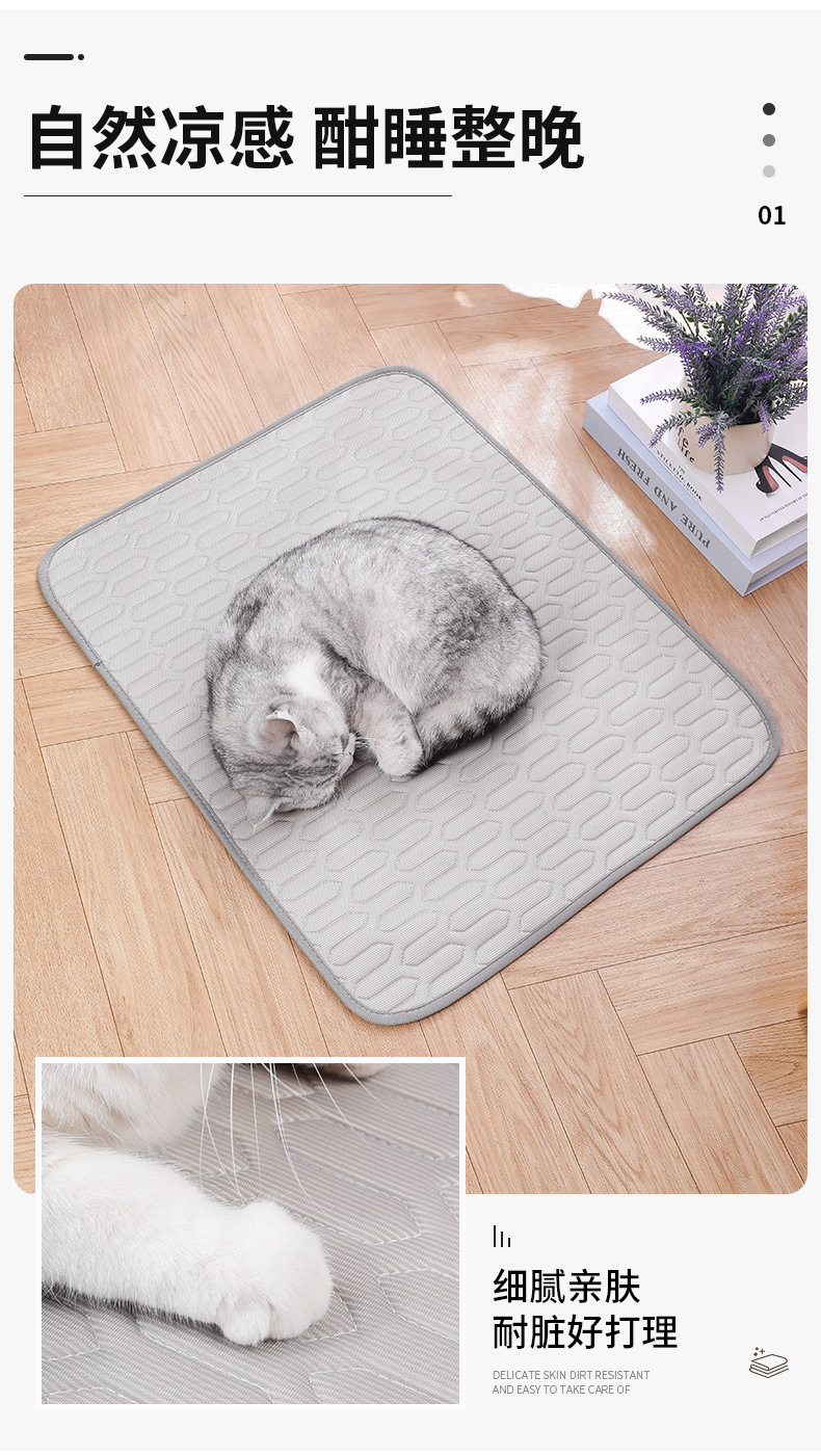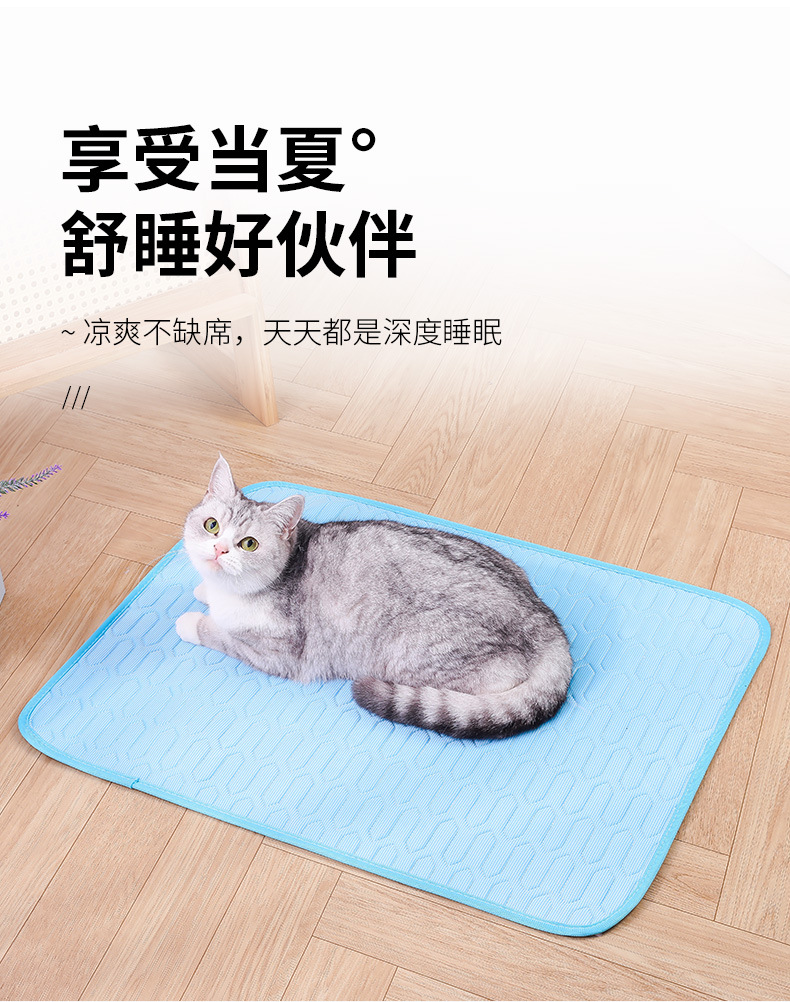 【产品说明】此款冰丝凉垫是薄款的,表面凉感面料,中间填充物是乳胶,底部是防滑的滴塑布,比较柔软,可使用于地板/沙发/床上/窝里等,手感凉丝丝的,不是冰凉的那种,太凉了对小宠的肠胃不好。