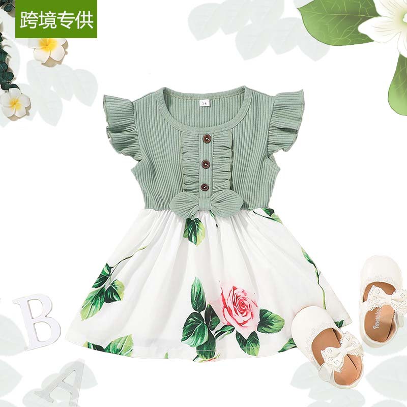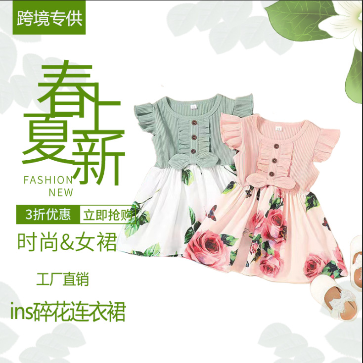 국경 간 재고 소녀 새로운 여름 원피스 패션 인쇄 어린이 패치 워크 스커트 유럽과 미국 어린이 스커트 도매 핫 세일