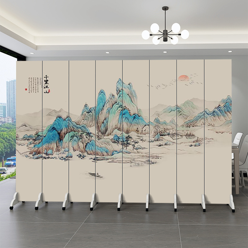 Qianli Jiangshan 그림 화면 파티션 거실 사무실 접이식 모바일 티 룸 호텔 중국 풍경 그림스토어 가기