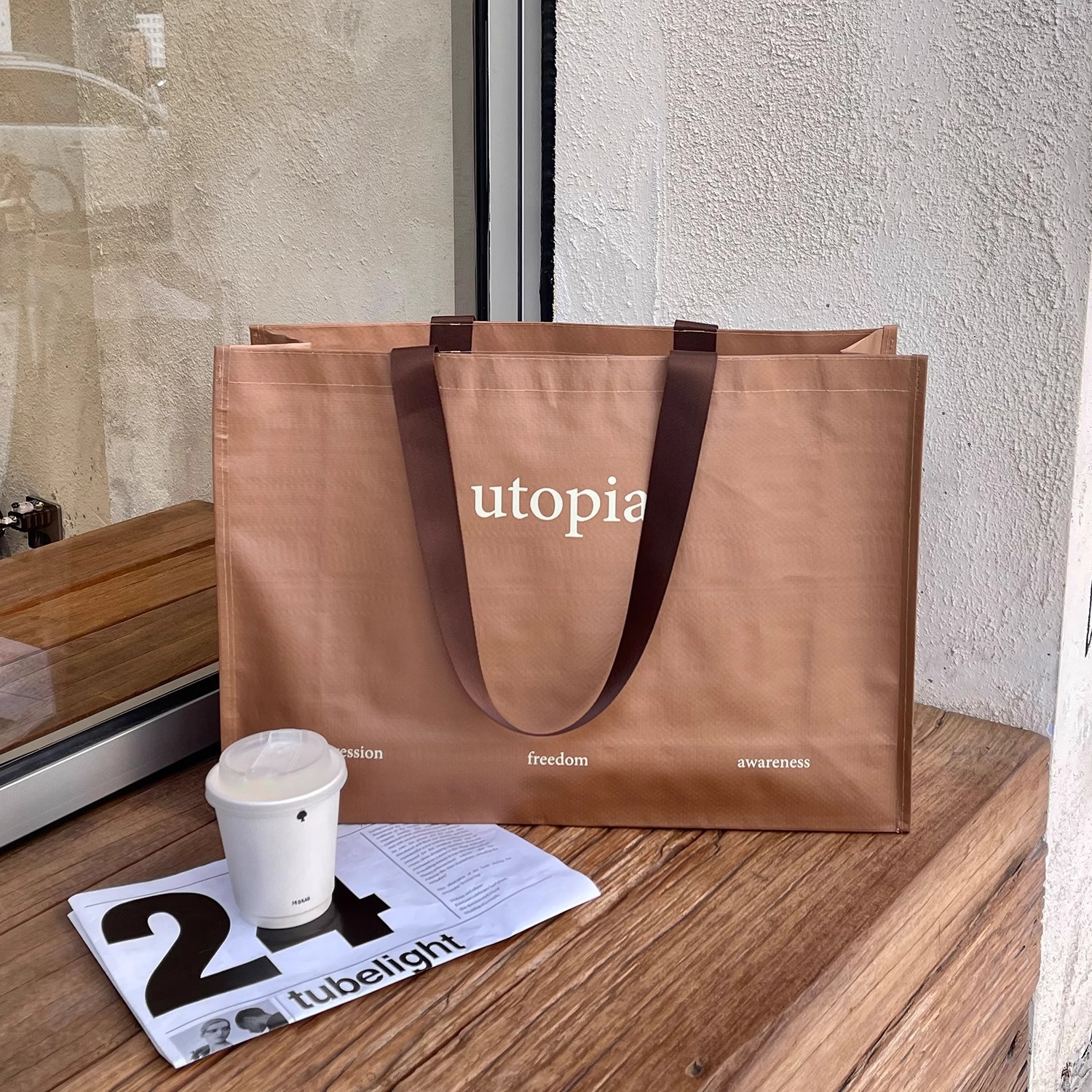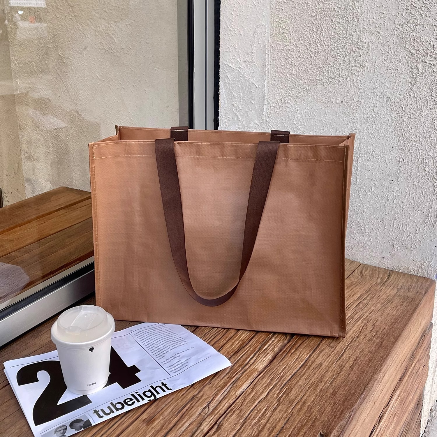 • 카키 브라운 우븐 백, 가로형 특대 사이즈 50*35*14CM, 1개