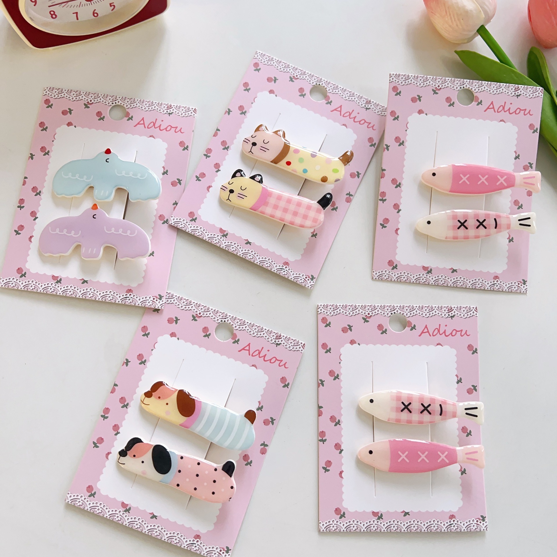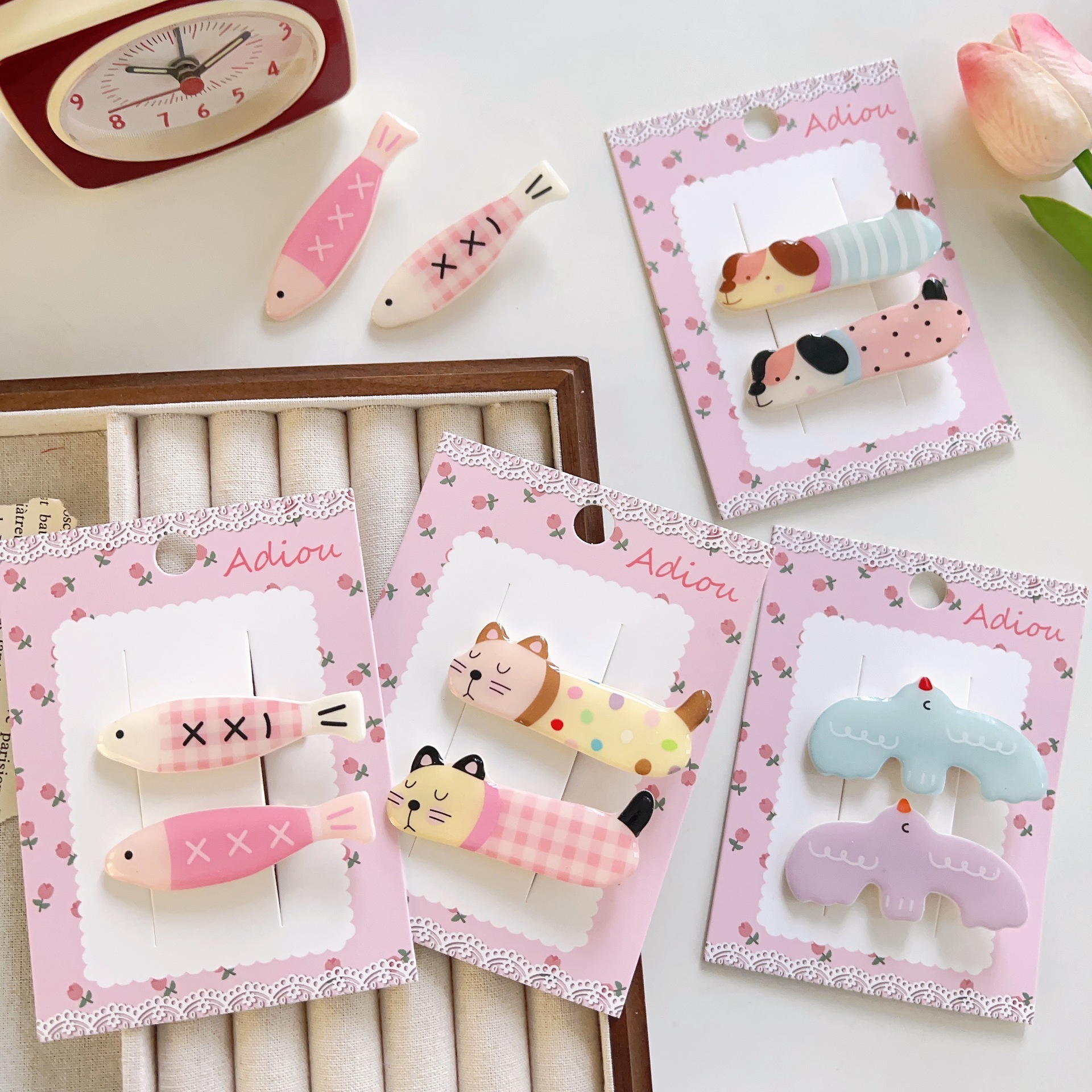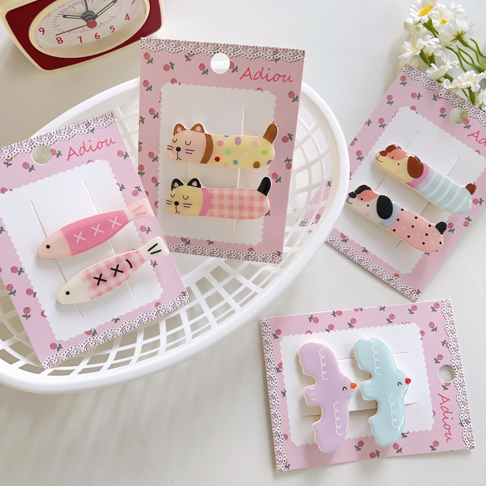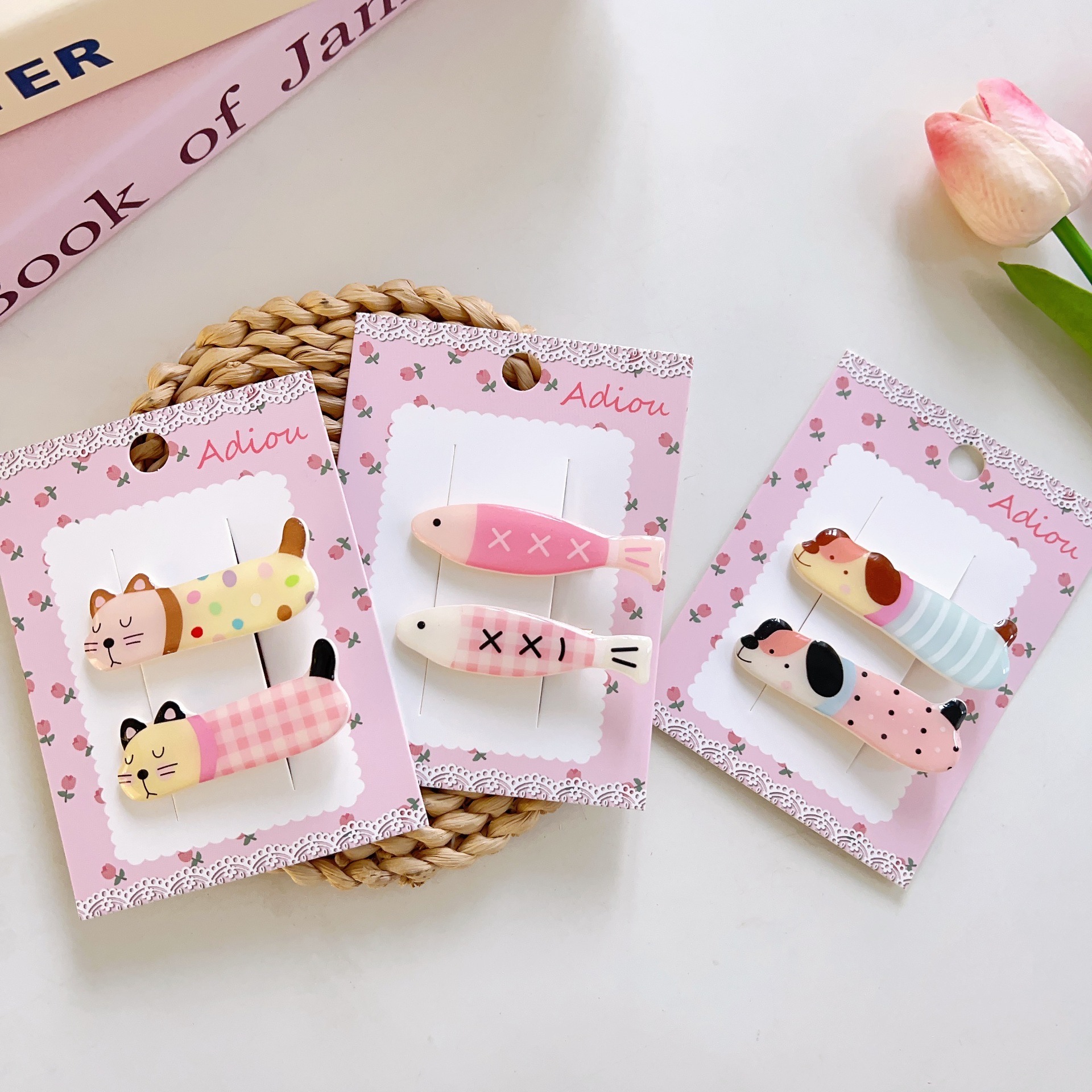 귀여운 강아지 새끼 고양이 머리핀 달콤한 만화 소녀 오리 지폐 클립 사이드 앞머리 클립 깨진 머리 클립 재미있는 머리 장식