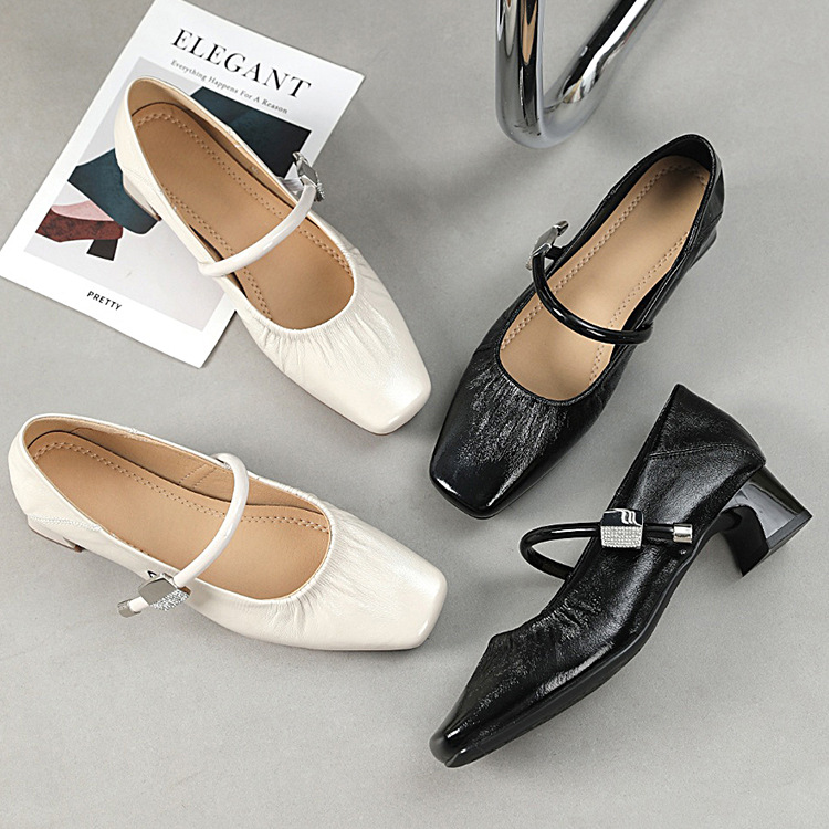 2025 봄과 여름 새로운 플러스 사이즈 여성 신발 41-43 패션 양가죽 얕은 입 통근 신발 편안한 메리 제인 신발스토어 가기