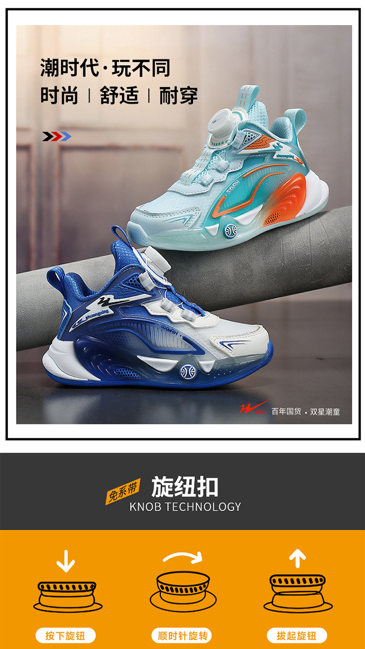 더블 스타 농구 신발 어린이 운동화 2024 봄과 가을 메쉬 통기성 러닝 신발 소년 소녀 운동화 버튼 신발스토어 가기