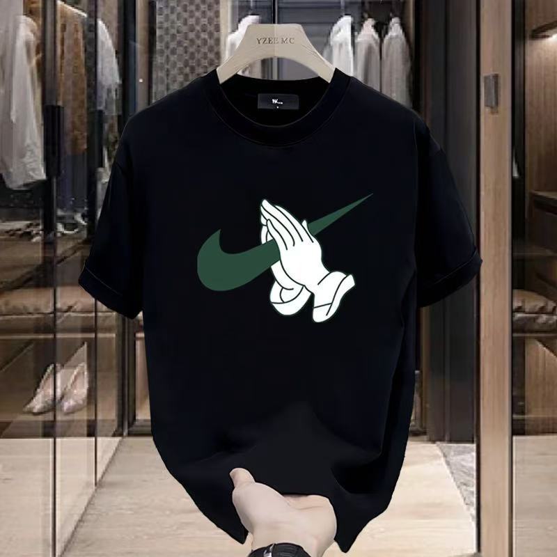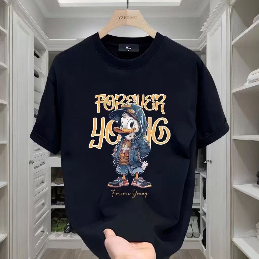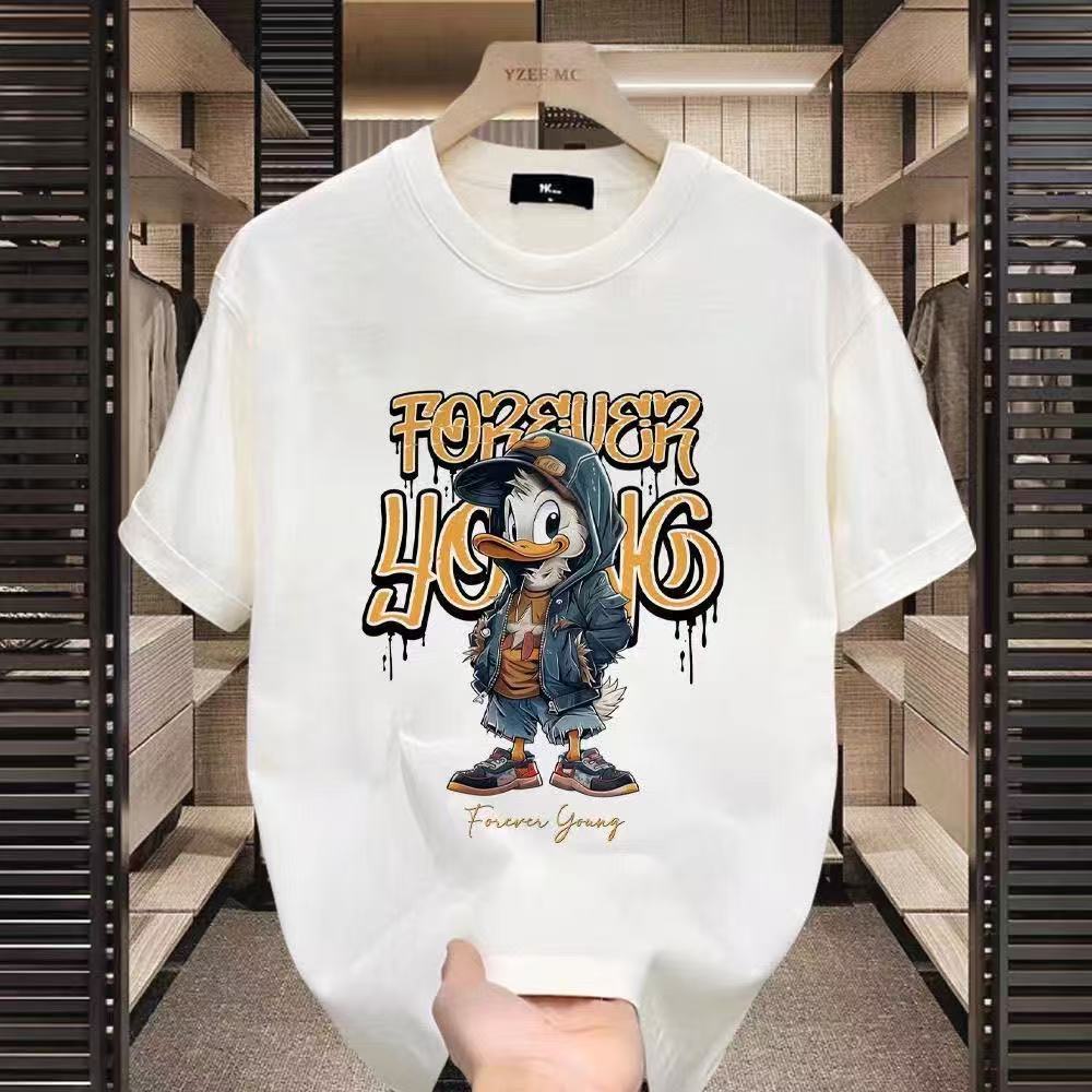 국경 간 의류 반팔 티셔츠 톱 2025 남자 여름 한국식 패션 인쇄 얇은 둥근 목베이스 셔츠스토어 가기