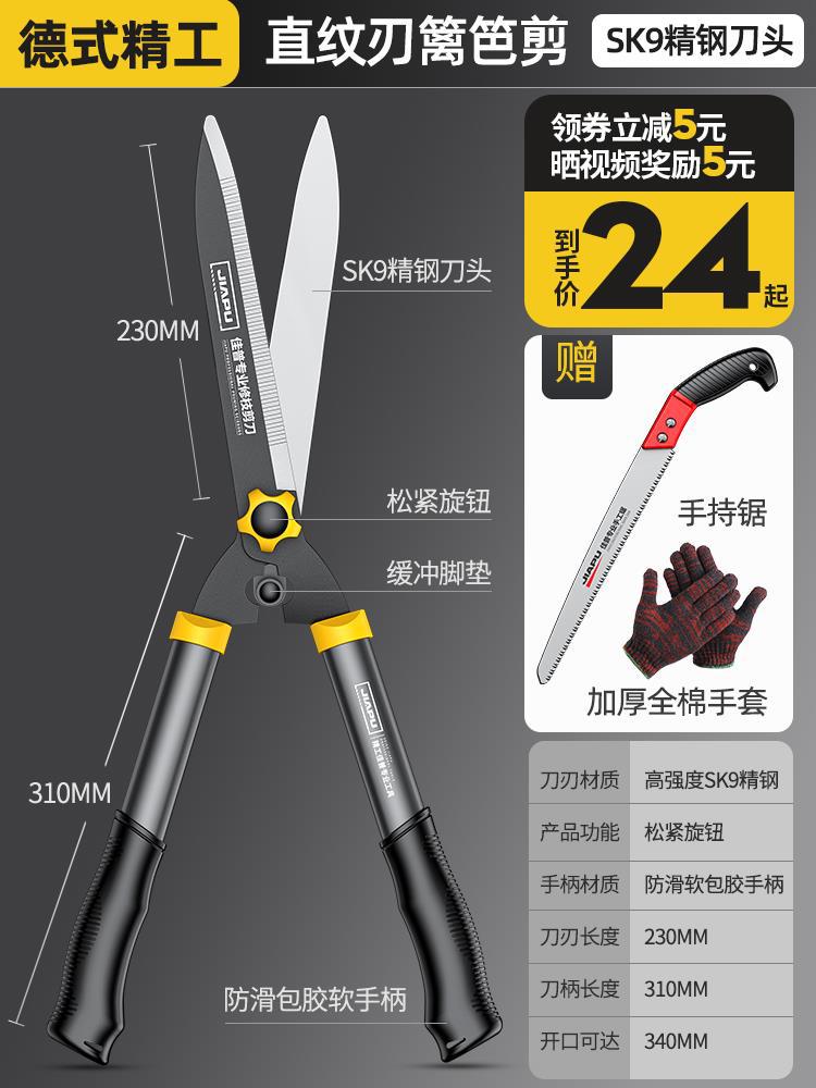 • [스타 추천] 확장 직선 칼날 울타리 가위(SK11 탄소강 칼날) + 무료 수제 톱