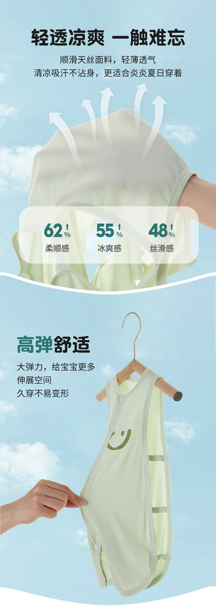 여름 얇은 얼음 실크 아기 피파 옷 신생아 소년과 소녀 아기 점프 수트 어린이 등반 옷 단색 잠옷스토어 가기