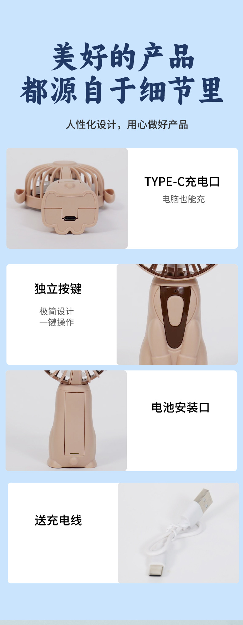 귀여운 애완 동물 미니 휴대용 데스크탑 충전 팬 미니 팬 개 소형 휴대용 학생 휴대용 팬스토어 가기