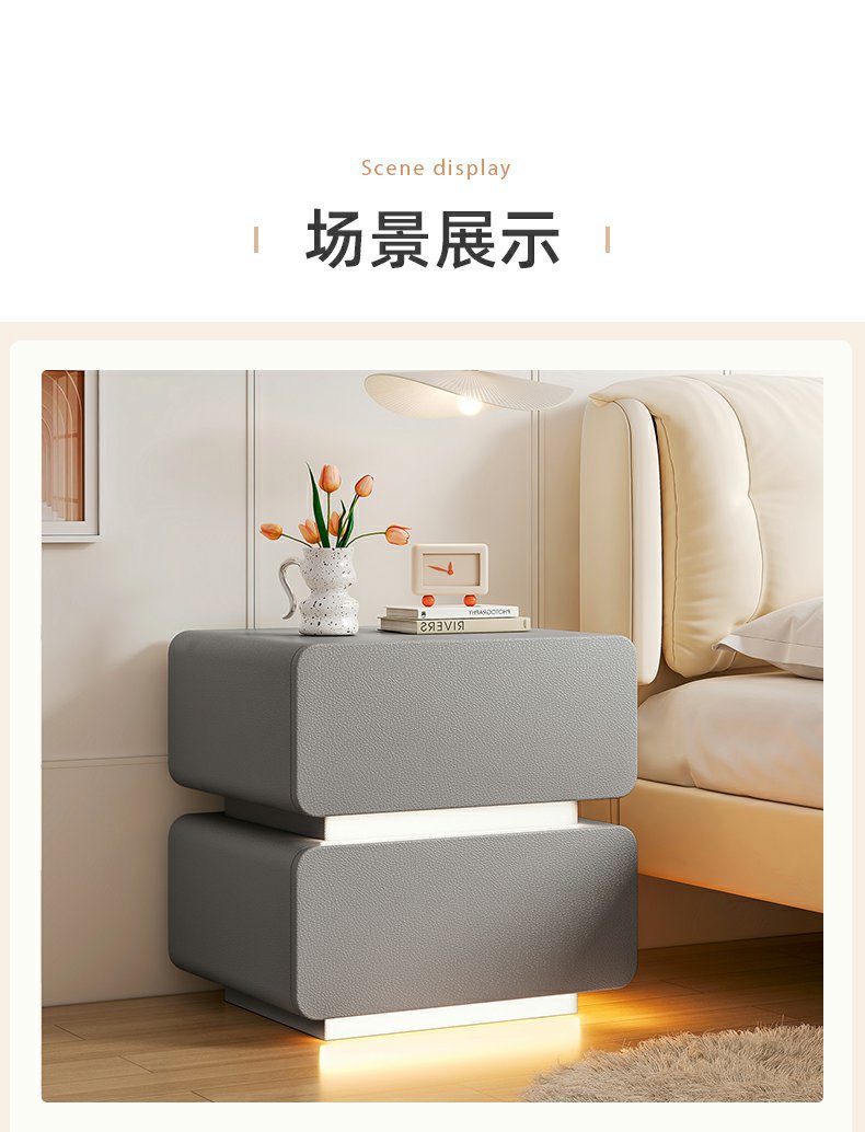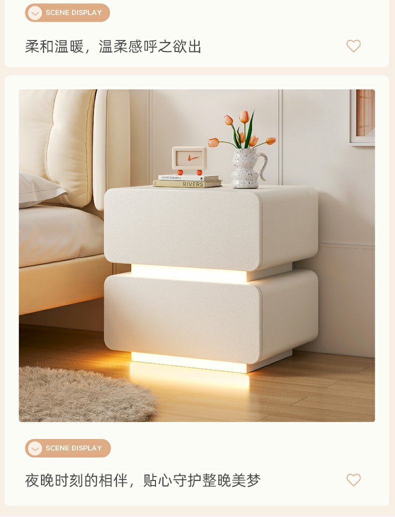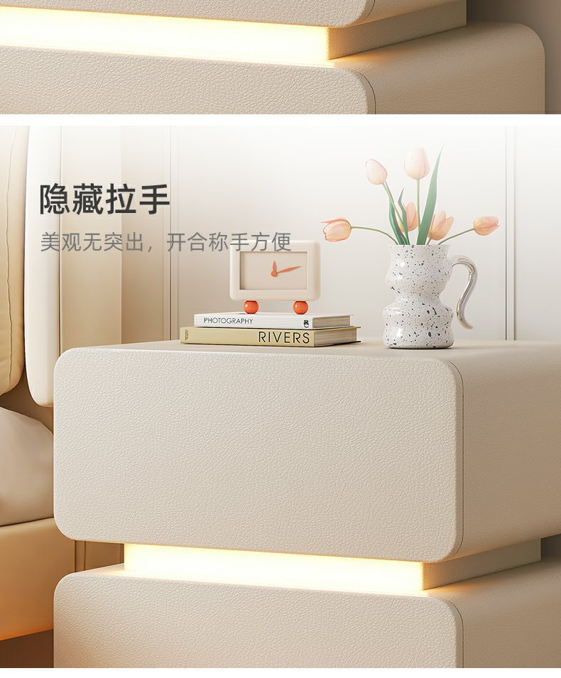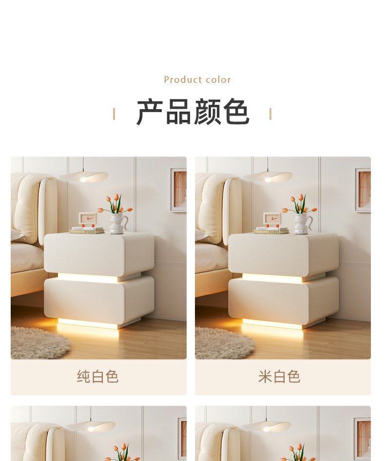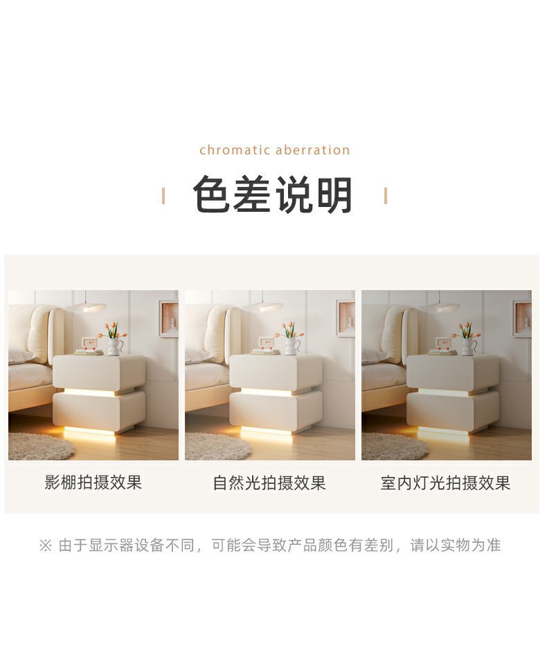 悬浮床头柜奶油风实木带灯极简家用卧室高级感床边储物柜简约现代