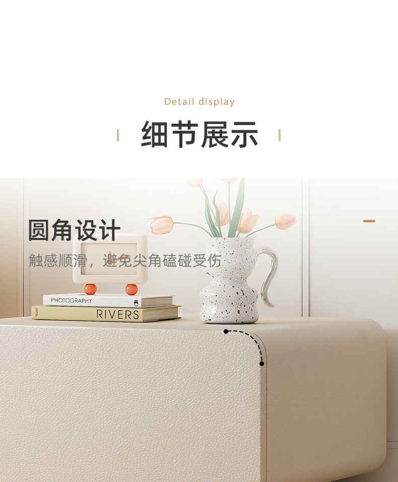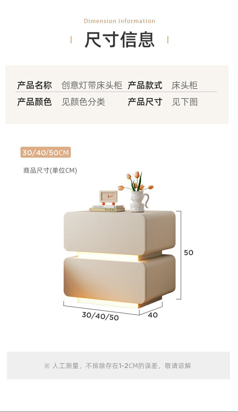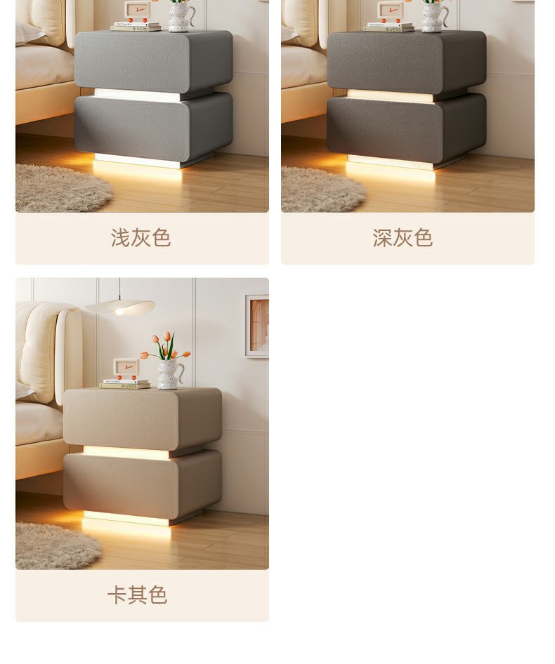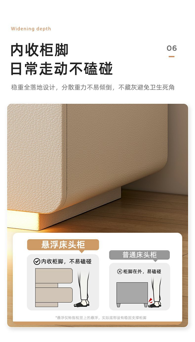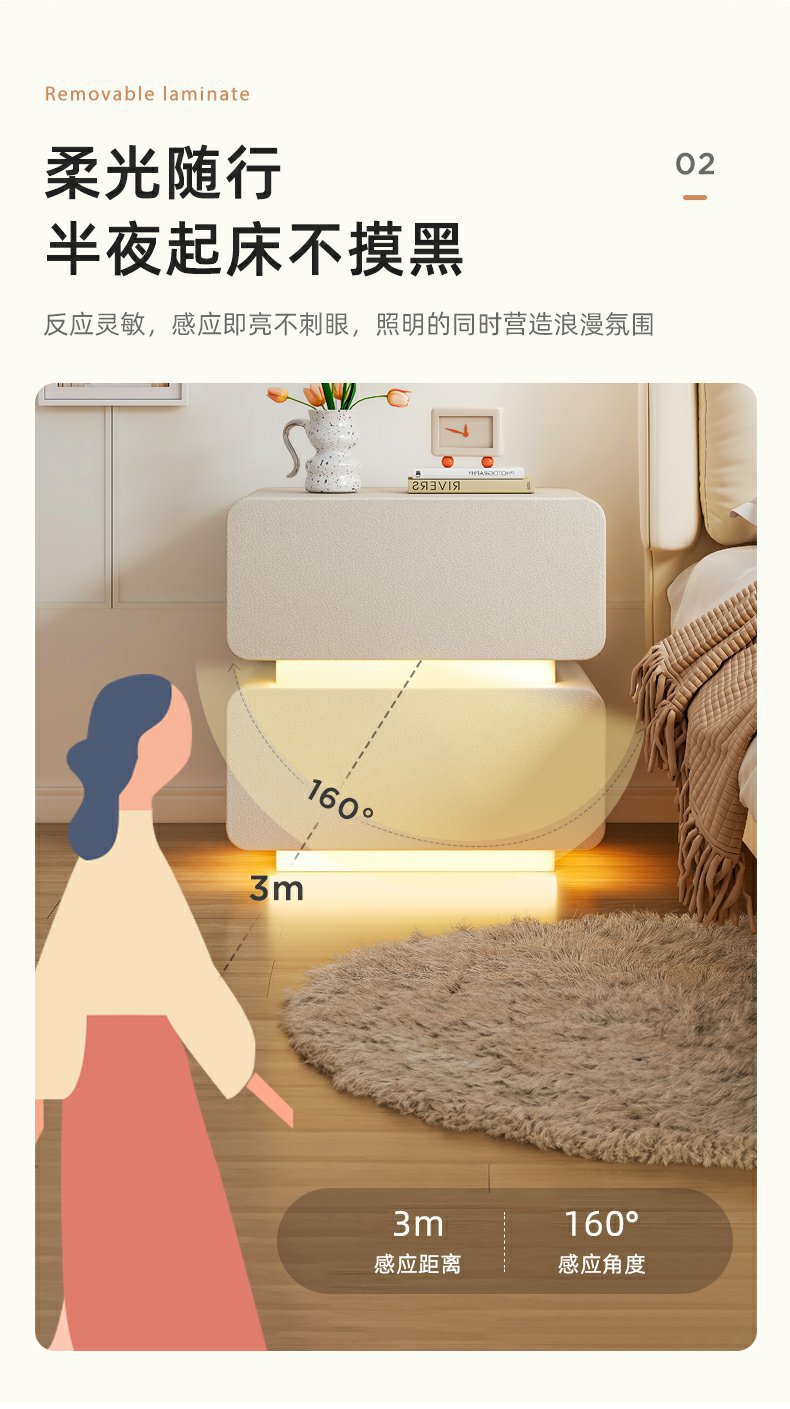 悬浮床头柜奶油风实木带灯极简家用卧室高级感床边储物柜简约现代