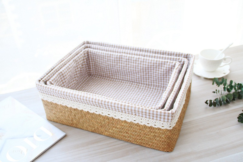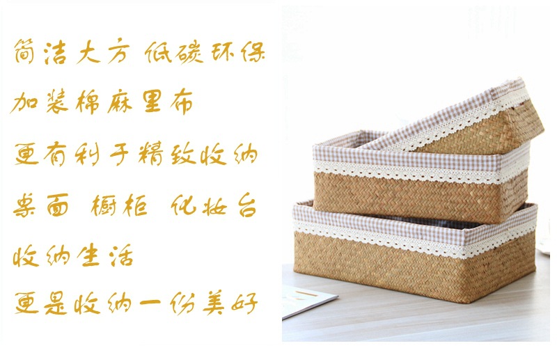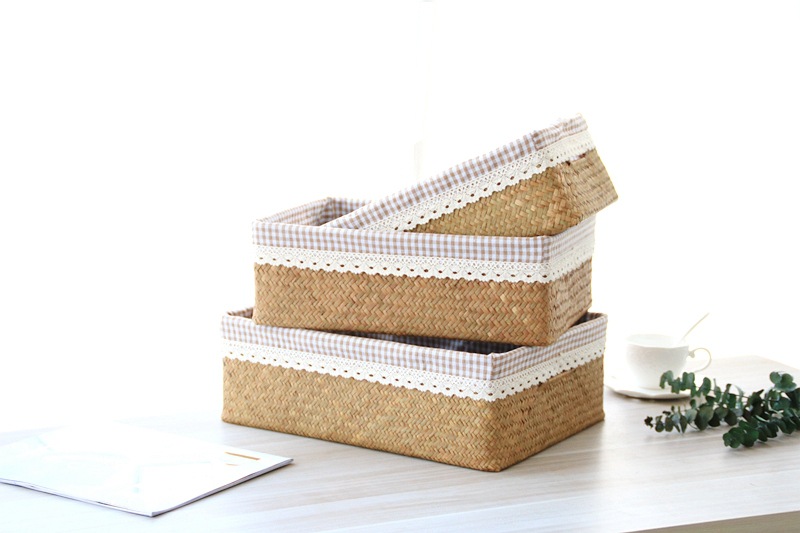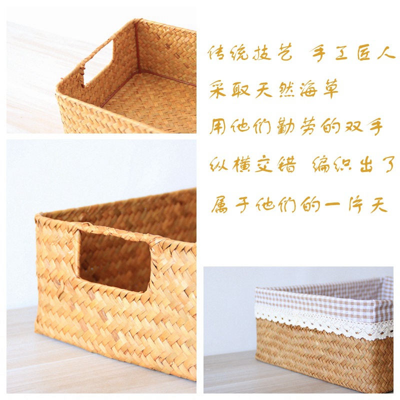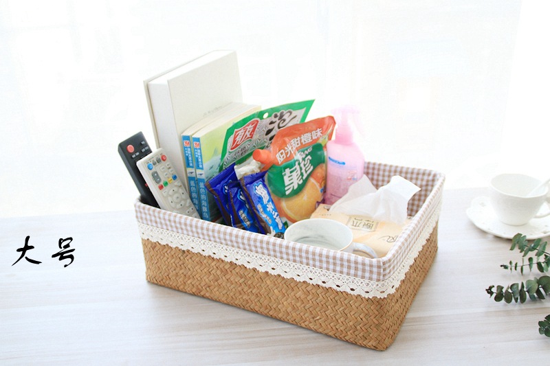 저장 바구니 등나무 짠 바다 짠 직물 데스크탑 큰 대나무 바구니 저장 프레임 저장 바구니 스낵 저장 상자