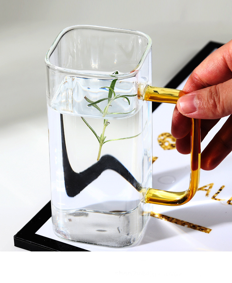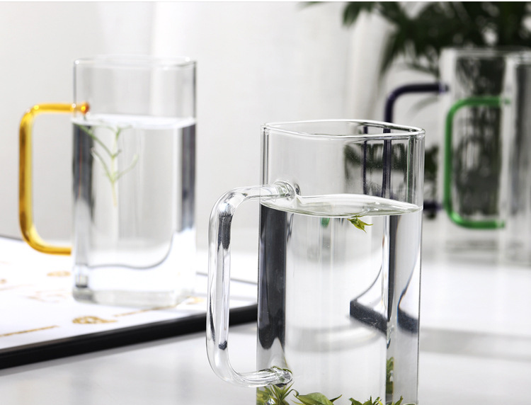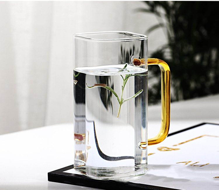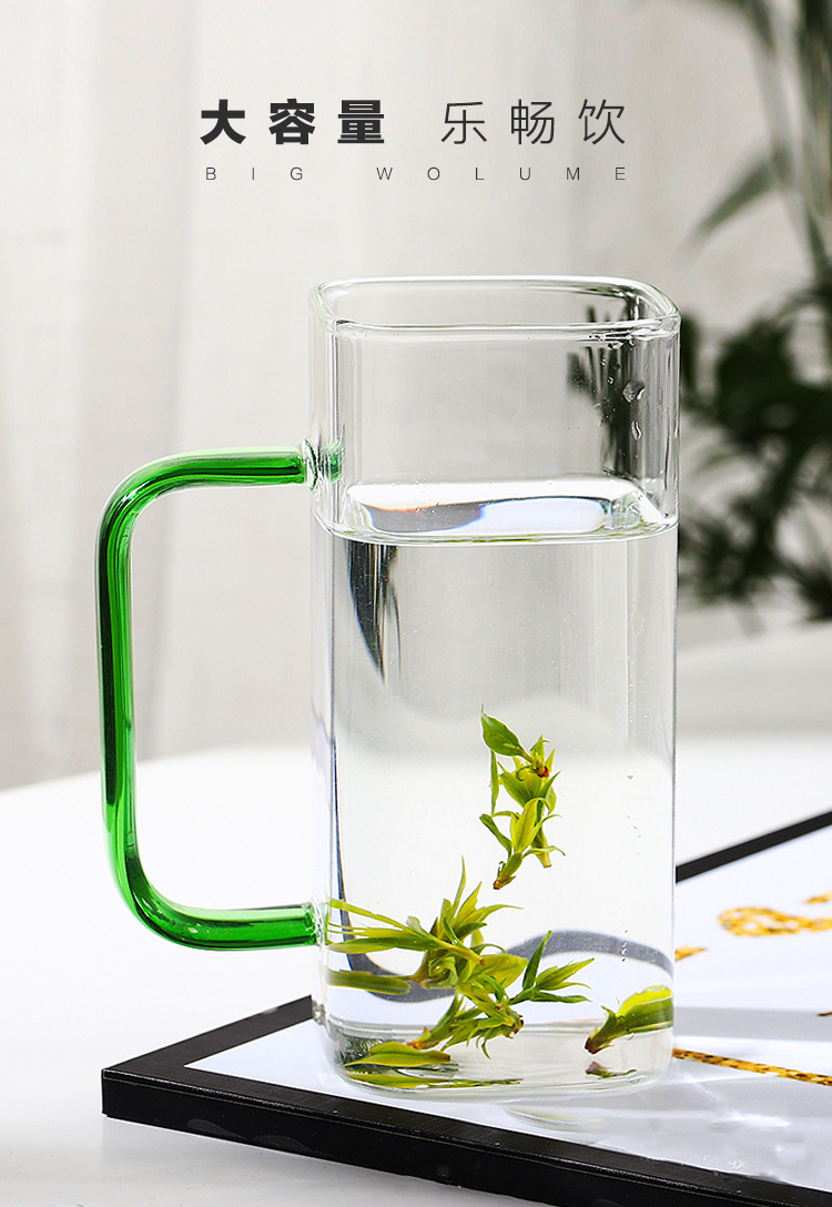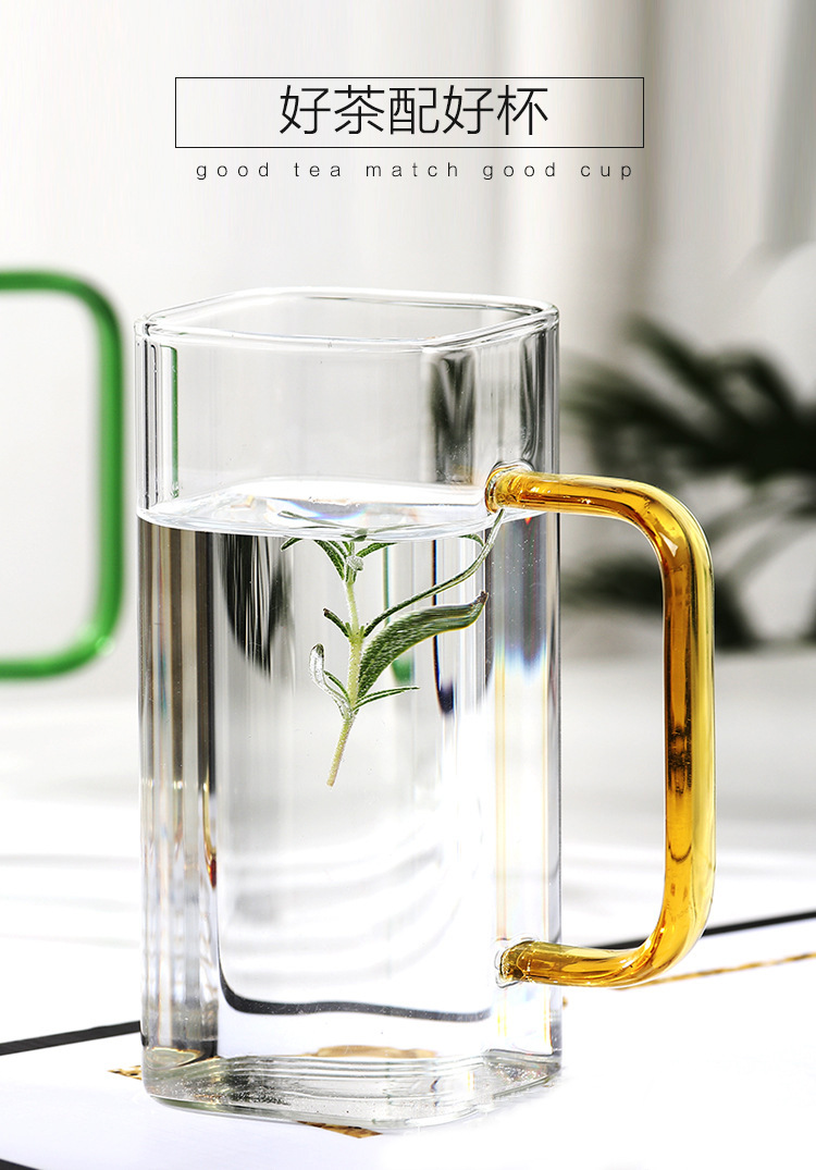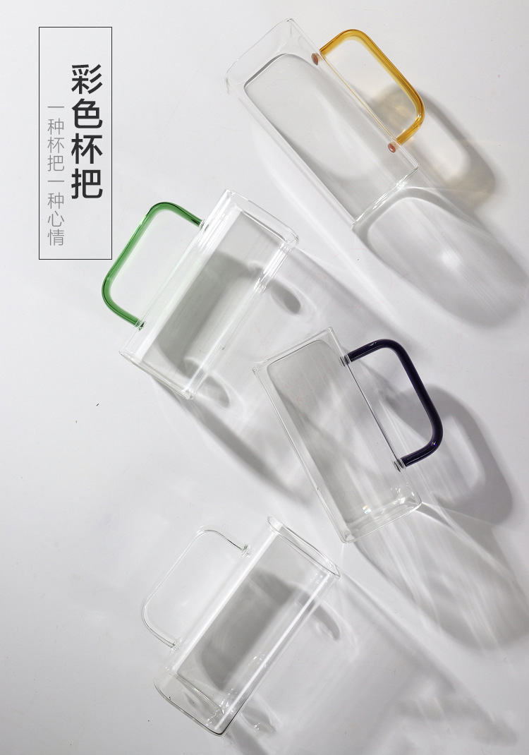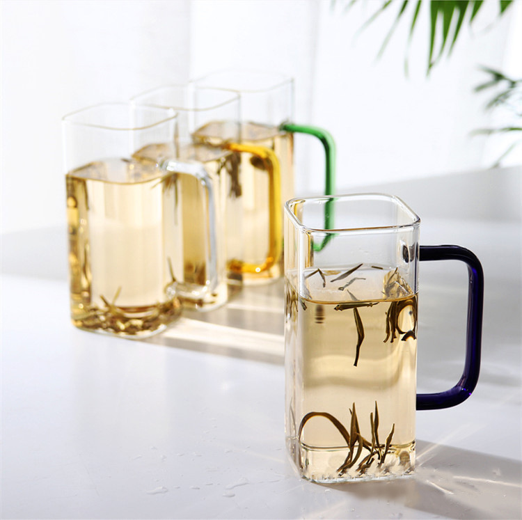 사각 입 컬러 단일 레이어 높은 색상 가치 유리 과일 주스 음료 컵 높은 붕규산 유리 커피 녹차 컵 마시는 컵스토어 가기