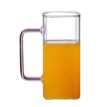 사각 입 컬러 단일 레이어 높은 색상 가치 유리 과일 주스 음료 컵 높은 붕규산 유리 커피 녹차 컵 마시는 컵