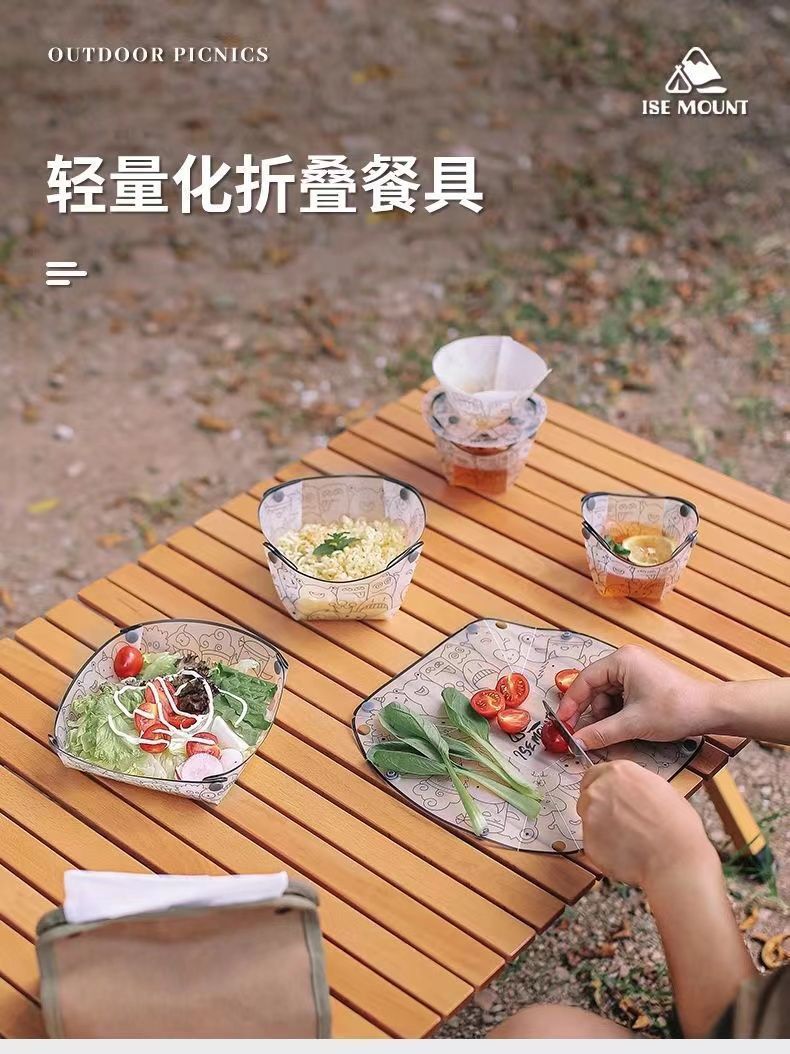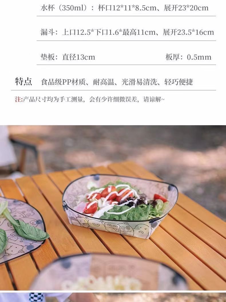 접는 그릇 고온 저항하는 음식 급료 야외 여행 디너 플레이트 필터 워터 컵 캠핑 세트 기숙사 식기스토어 가기