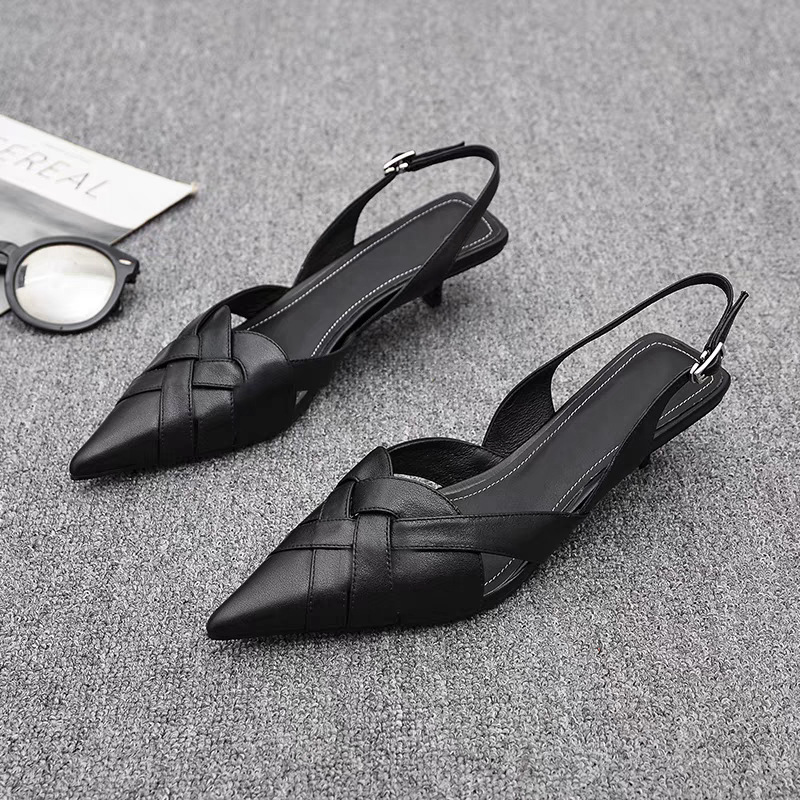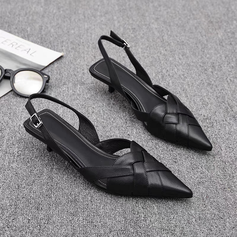 바오터우 포인티드 토 우븐 하프 슬리퍼 2025 봄 신작 뮬 샌들 중공 패션 대외 무역 여성 샌들스토어 가기