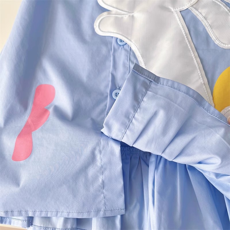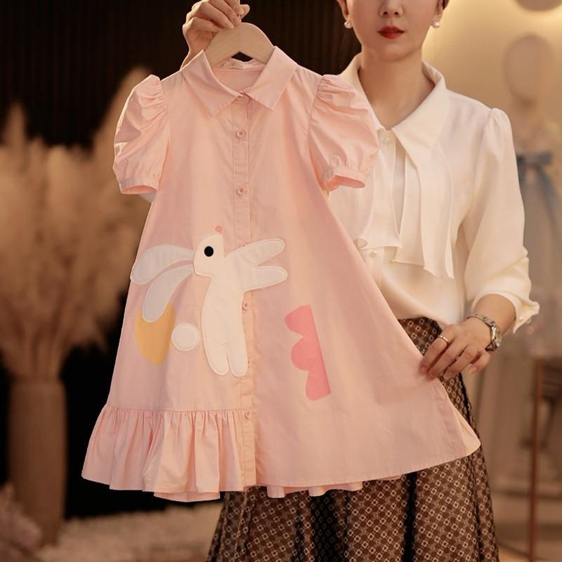 여자 토끼 드레스 2025 새로운 순수 코튼 반팔 캐주얼 셔츠 드레스 여름 공주 드레스 어린이 드레스스토어 가기