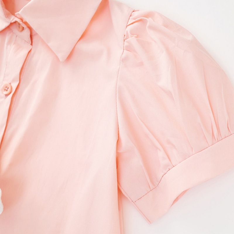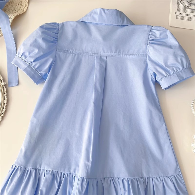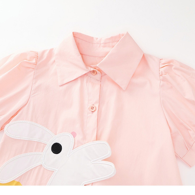 여자 토끼 드레스 2025 새로운 순수 코튼 반팔 캐주얼 셔츠 드레스 여름 공주 드레스 어린이 드레스