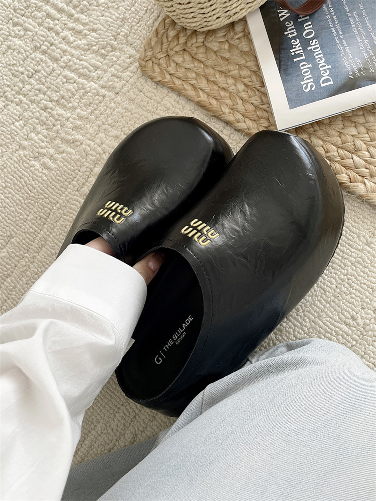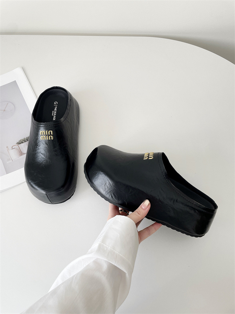 한국식 레트로 단순 올매치 플랫폼 하단 게으른 슬립온 소프트 하단 캐주얼 바오터우 뮬러 하프 드래그