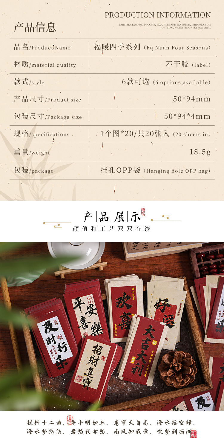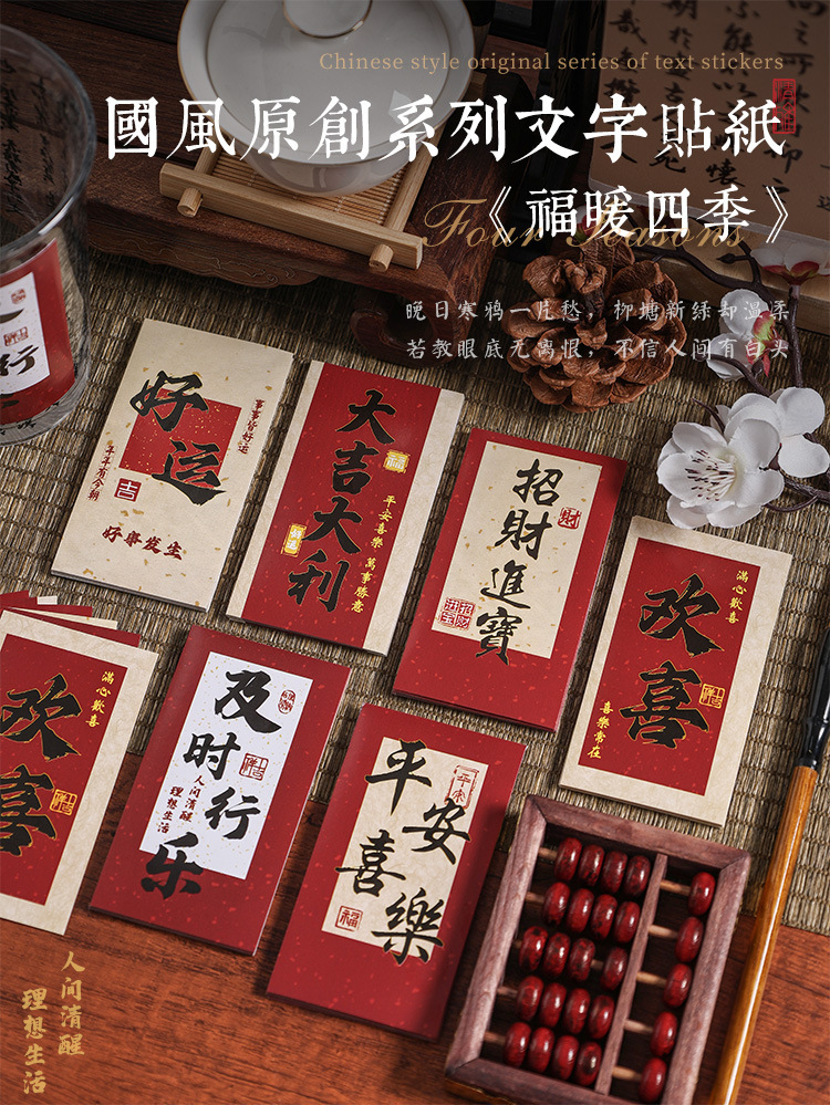 Guofeng 원래 씰 스티커 높은 색상 가치 스트립 팩 카드 만화 손 계정 스티커 어린이 스티커스토어 가기
