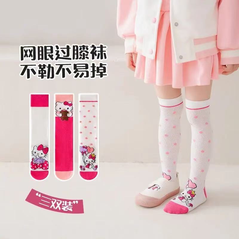 Kulomi Girls Over-the-Knee 양말 25 여름 메시 소녀 달콤한 만화 아기 스타킹 중소 및 대형 어린이 높은 스타킹