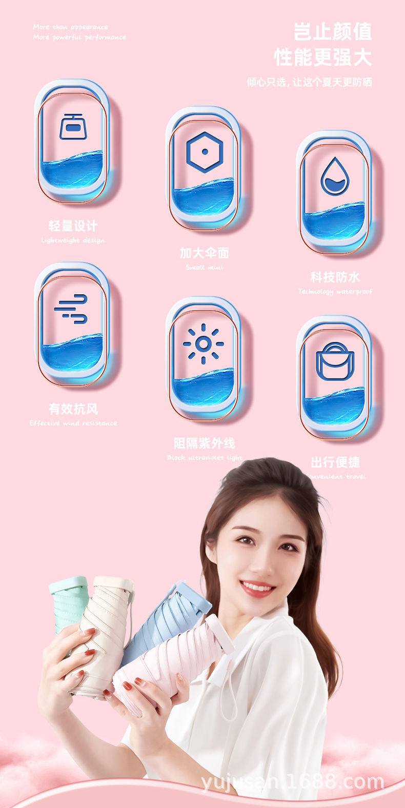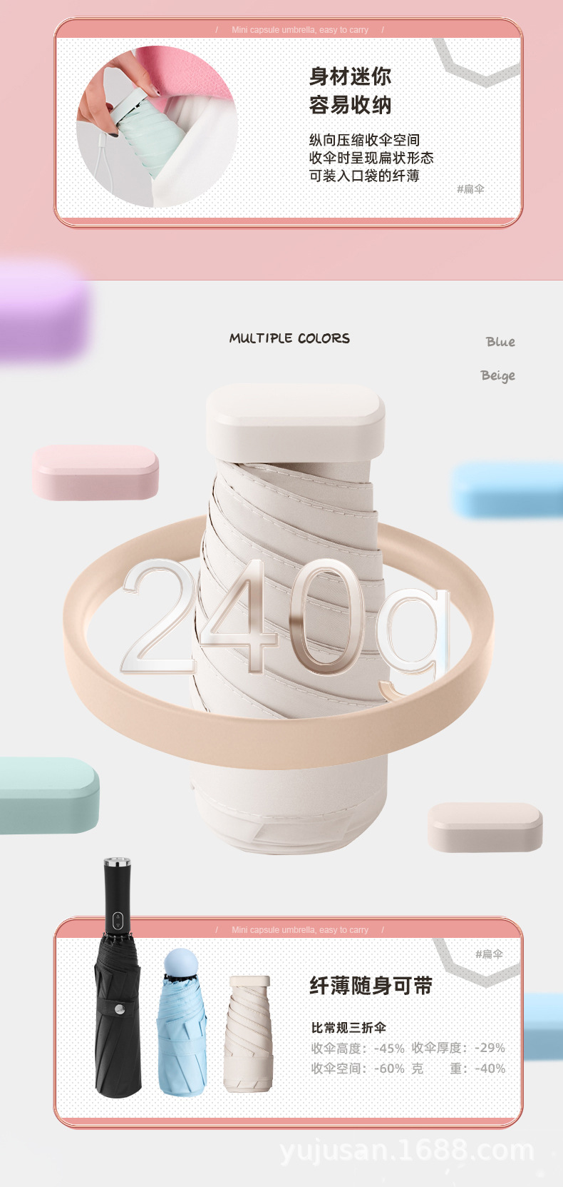 24 구비아 캡슐 태양 우산 선 스크린 UV 선 스크린 선 스크린 선 스크린 선 스크린 선 스크린 선 스크린 선 스크린 선 스크린 및 비 이중 목적 미니 초경량 컴팩트 세트 휴대용스토어 가기