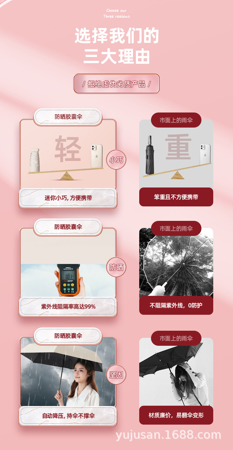 • 평평한#강화48리브-사쿠라핑크 [미니포켓카드우산] 고출력 자외선 차단