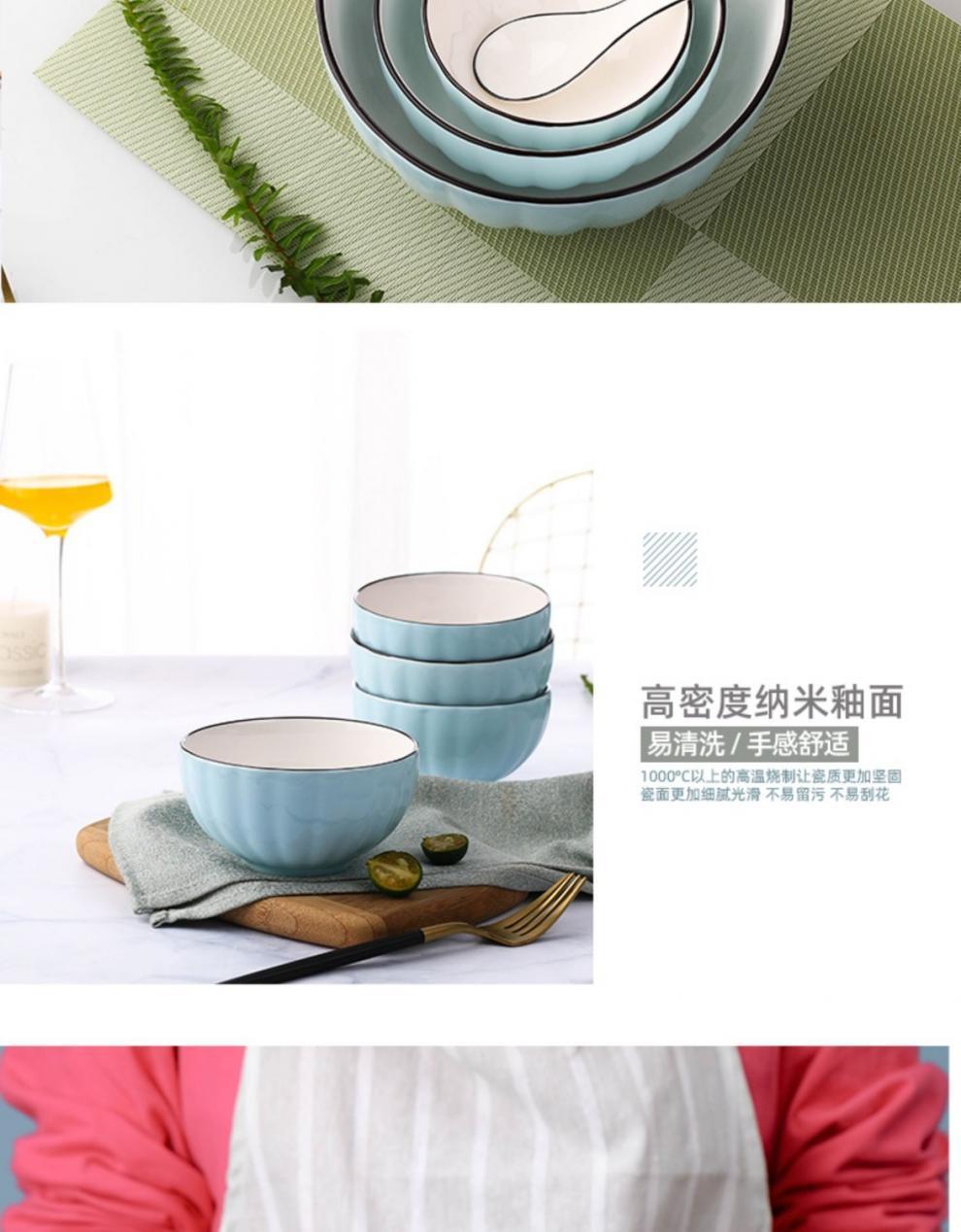 [피해 보상] 4/6/10 가정용 세라믹 식탁 호박 그릇 국수 그릇 수프 그릇 간단한 식기