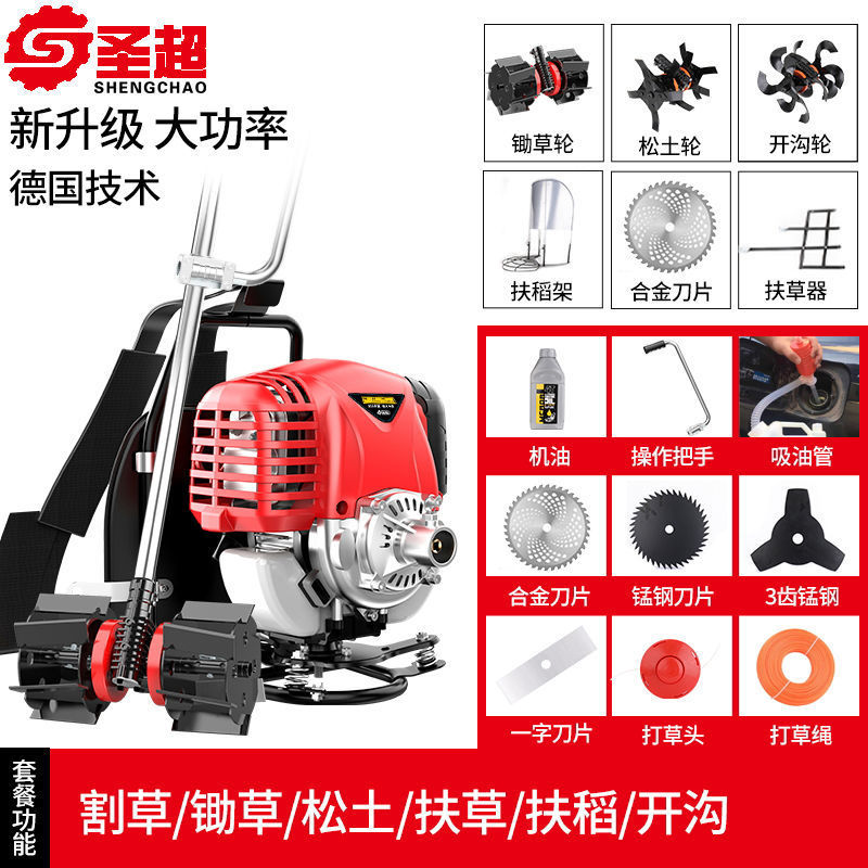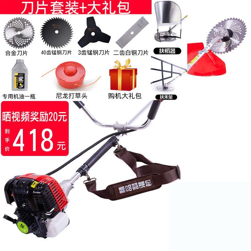 잔디 깎는 기계 4 행정 배낭 형 소형 브러시 커터 다기능 가솔린 청소 잔디 깎는 기계 수확기
