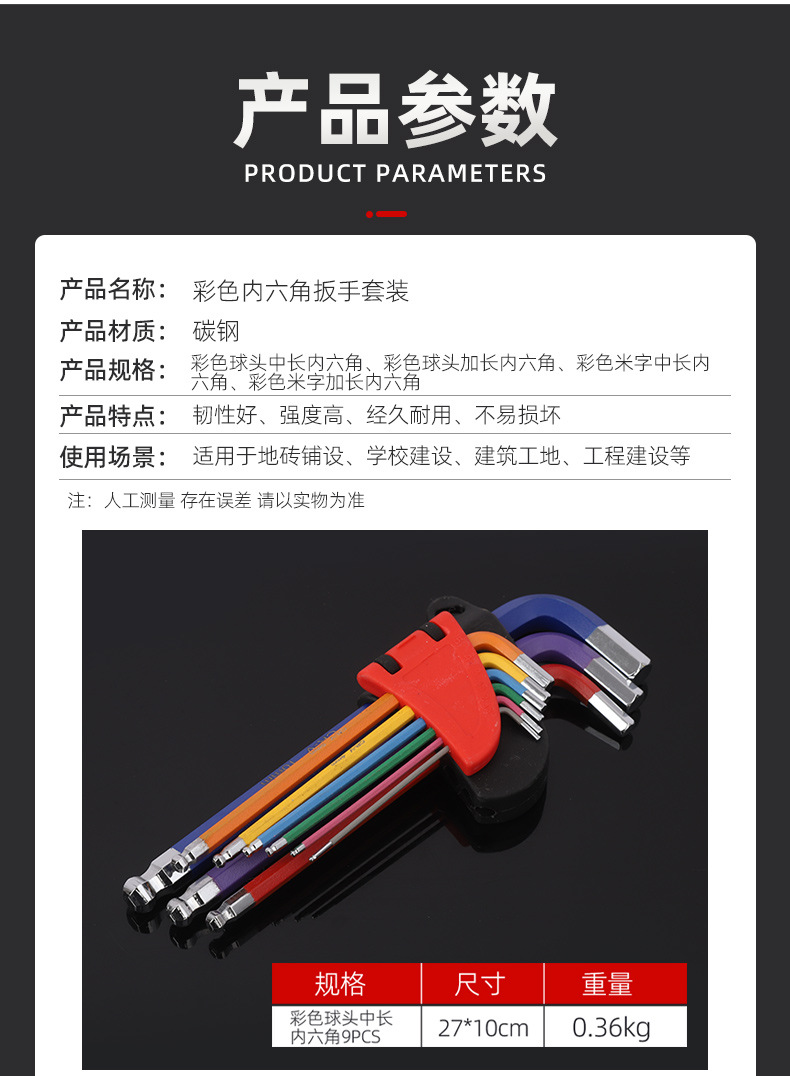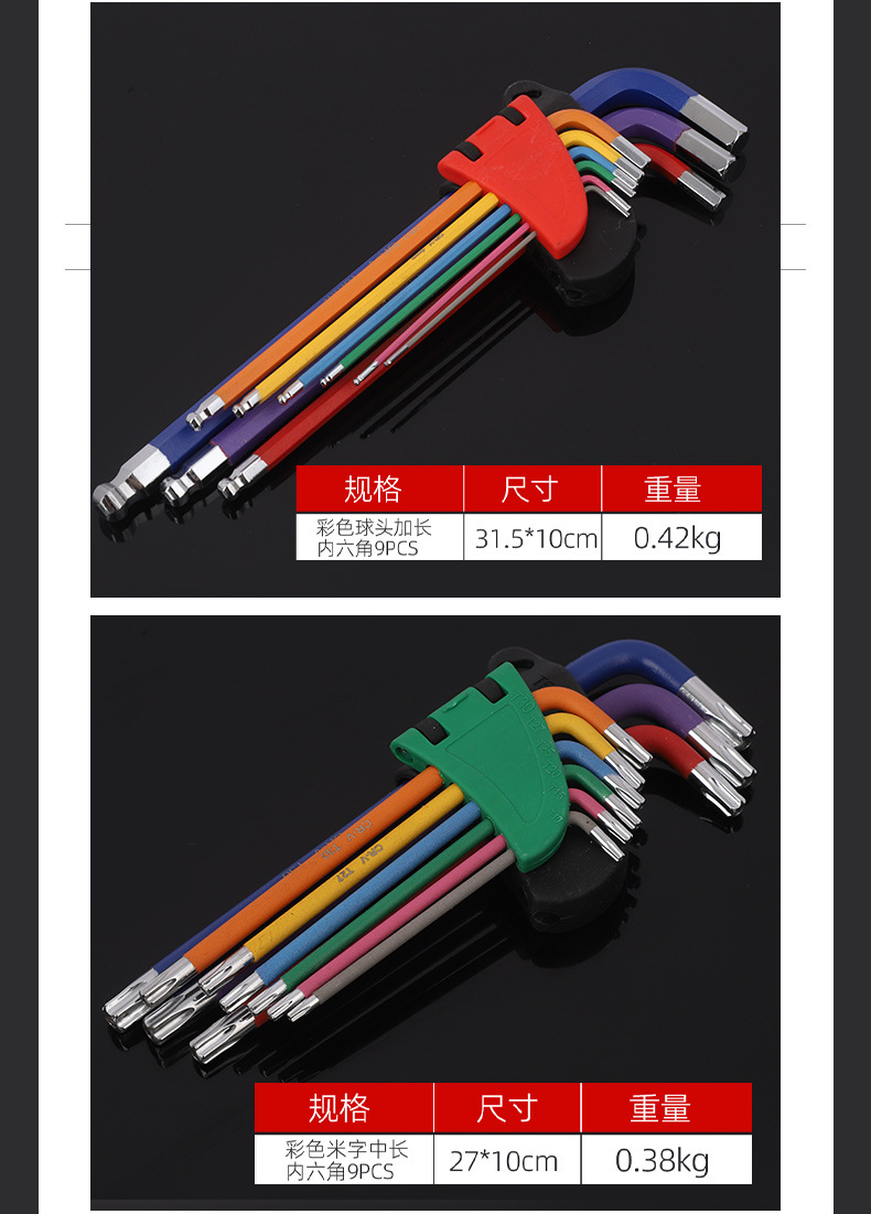 • 컬러 볼 헤드 중간 길이 내부 육각형 9PCS