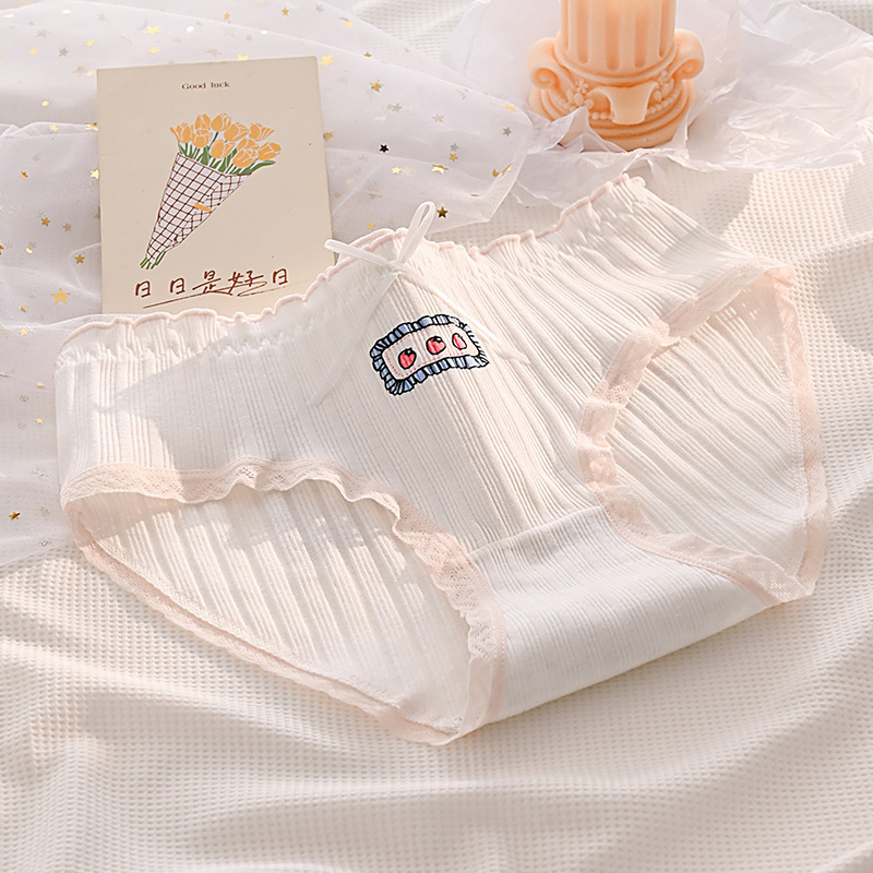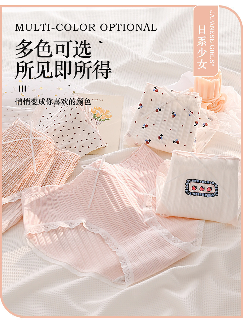 여성 속옷 더블레이어 이너 크로트 트리스 미드 웨이스트 소녀 태어난 가을 봄 여름 일본 스타일 소녀 순수한 욕망 스타일 삼각형 반바지