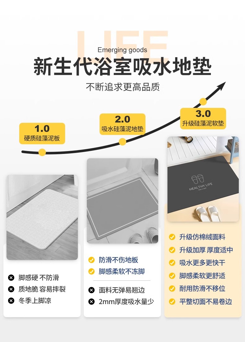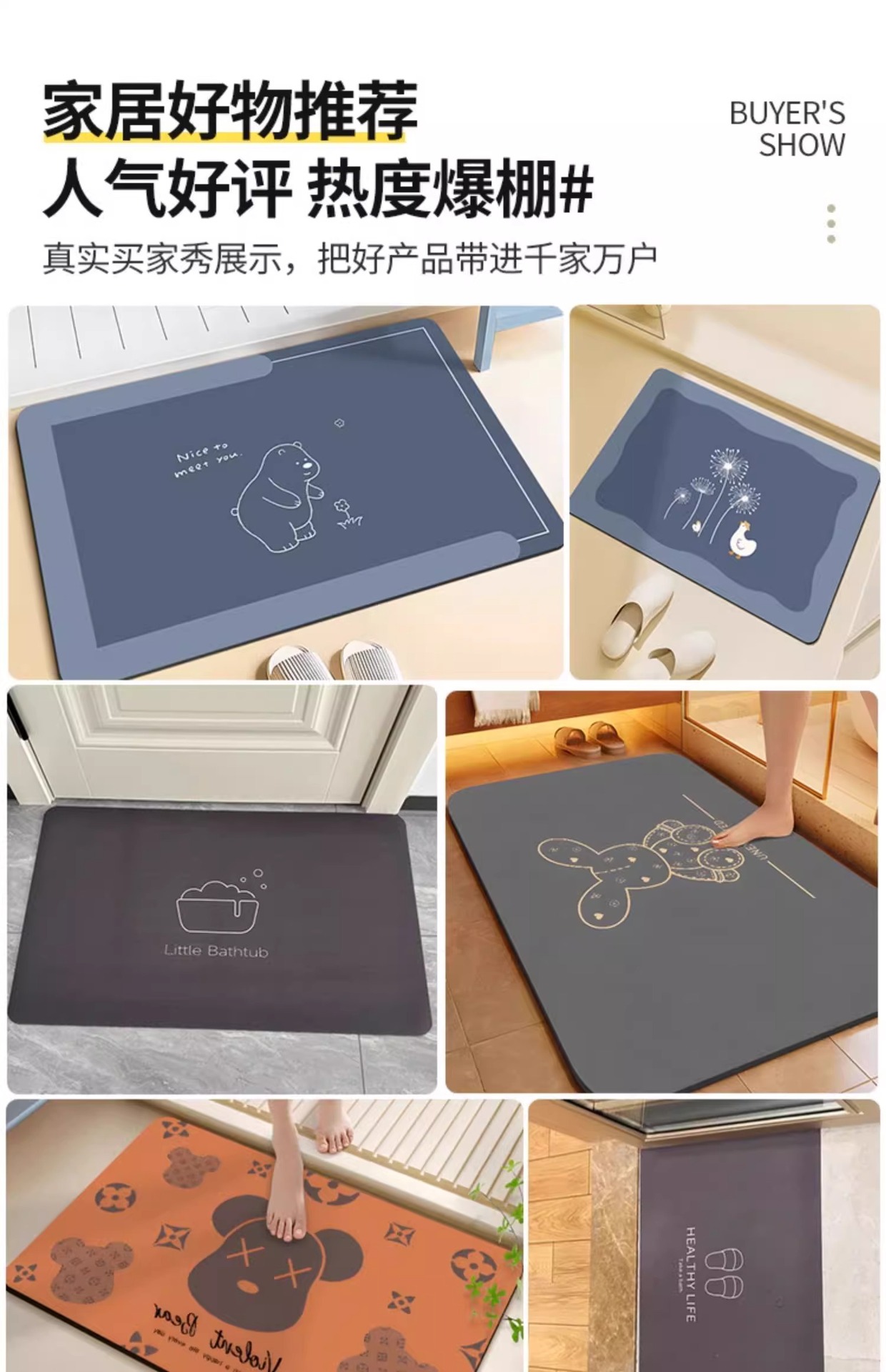 Diatom 진흙 흡수성 매트 진입 문 고급 미끄럼 방지 빠른 건조 발 매트 화장실 바닥 매트 주방 흡수성 미끄럼 방지 매트스토어 가기