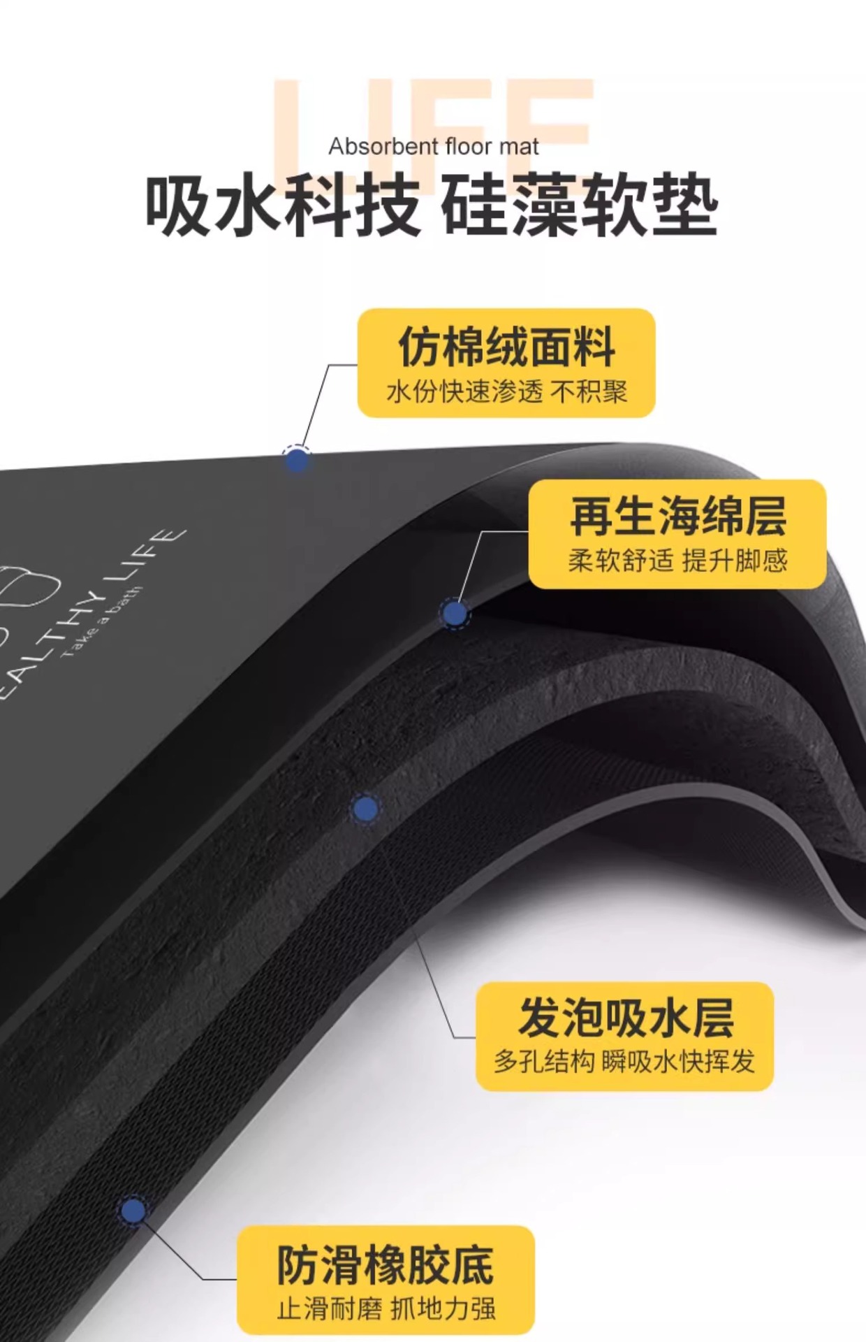 • 40×60cm [흡수성, 미끄럼방지, 발에 흔적이 남지 않음]