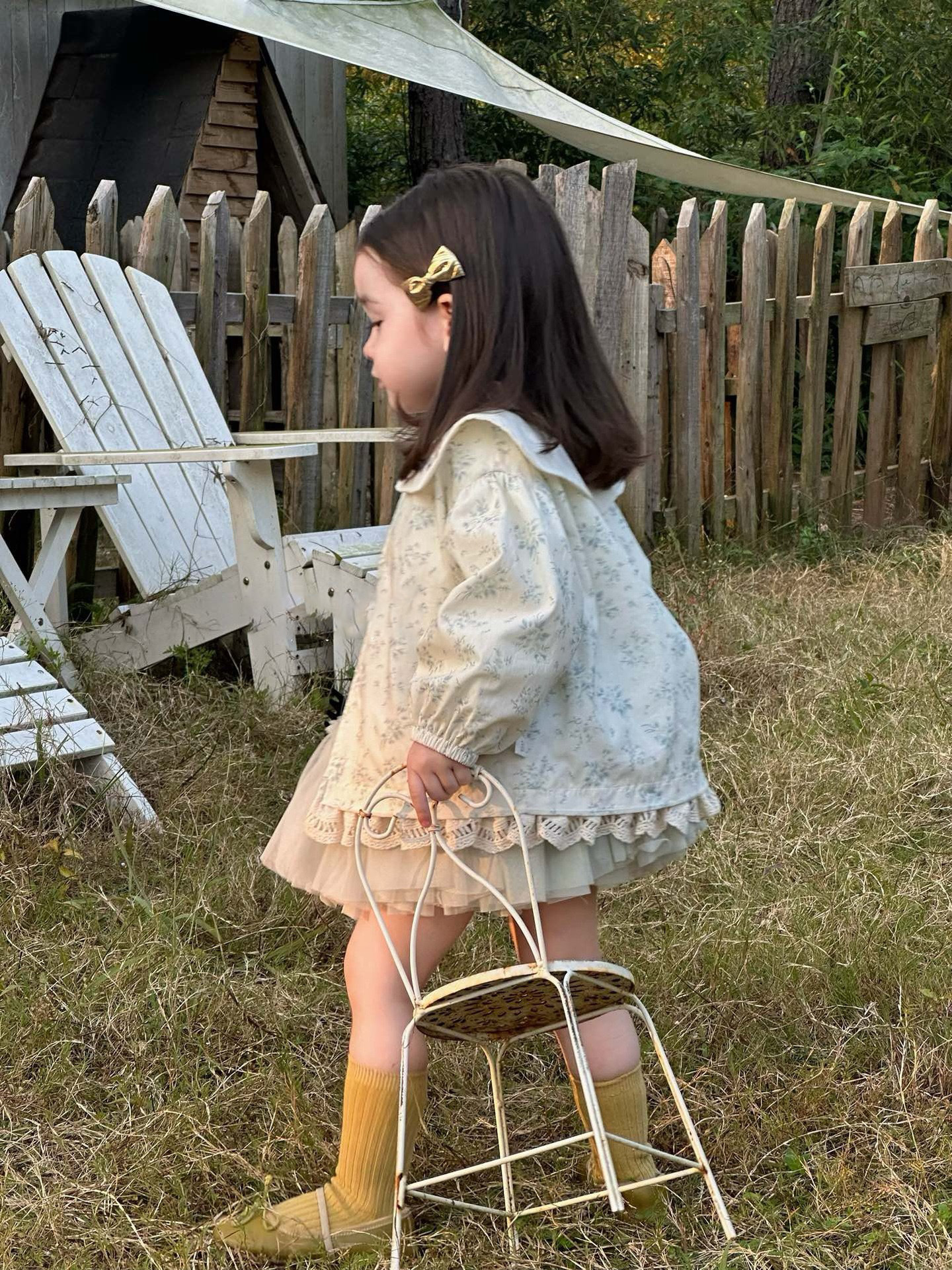 여아 의류 세트 2025 가을 신상 여아 꽃무늬 재킷 아기 이너웨어 망사 스커트 3종 세트