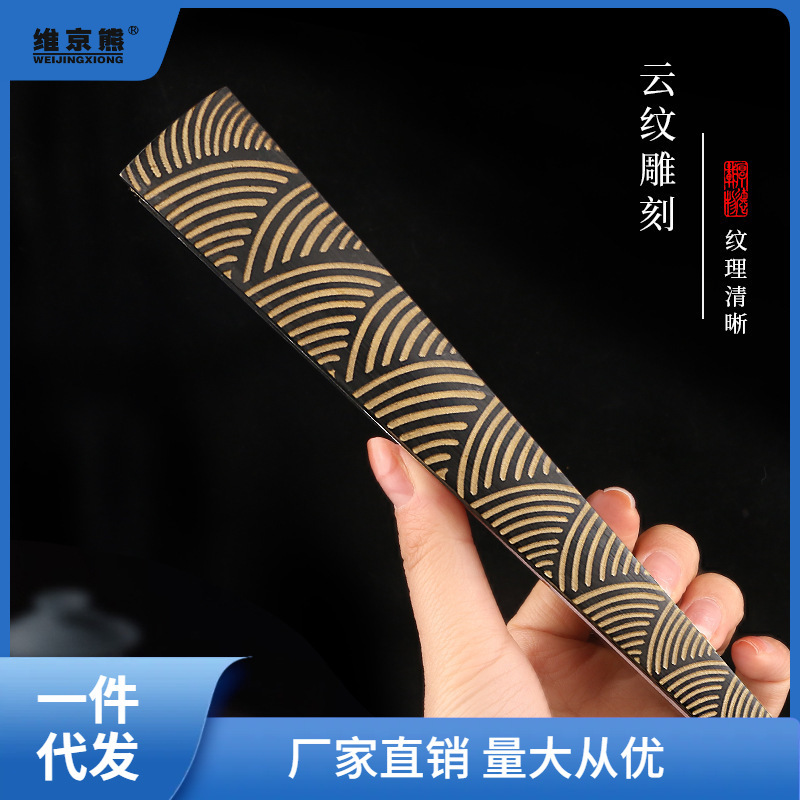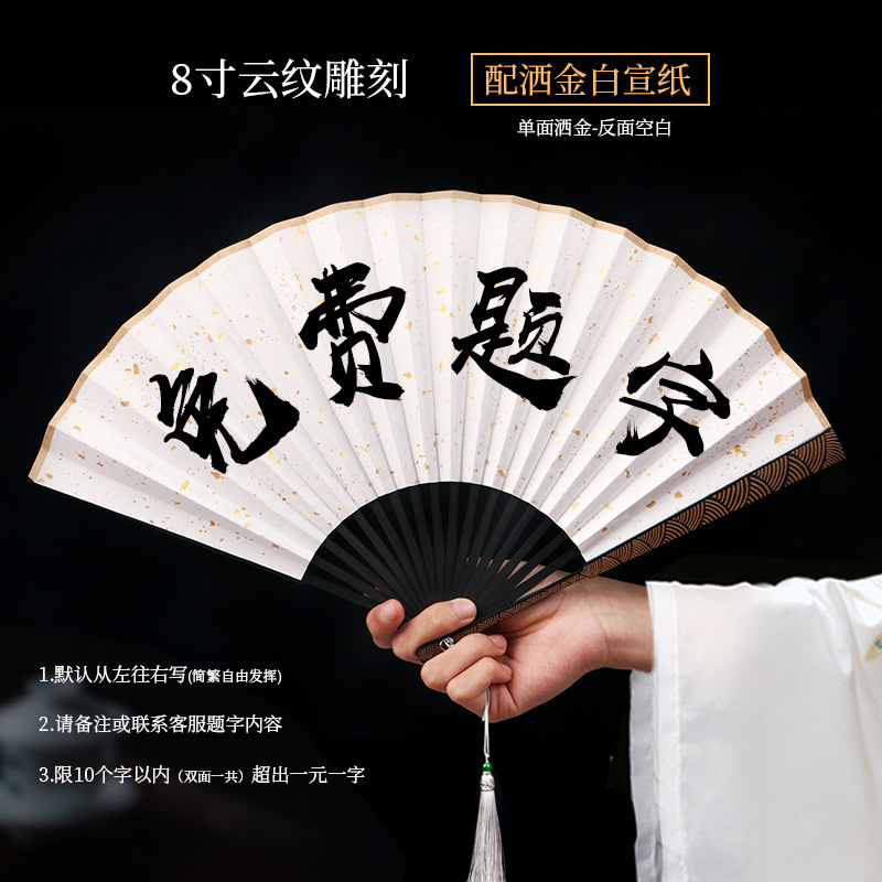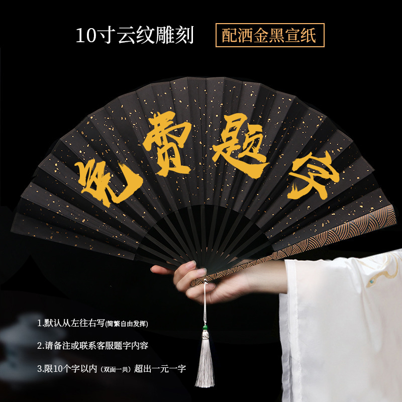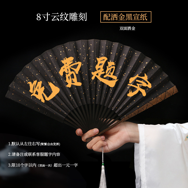 • 题字款 10inch 云雕黑洒金纸扇【送坠盒】☆