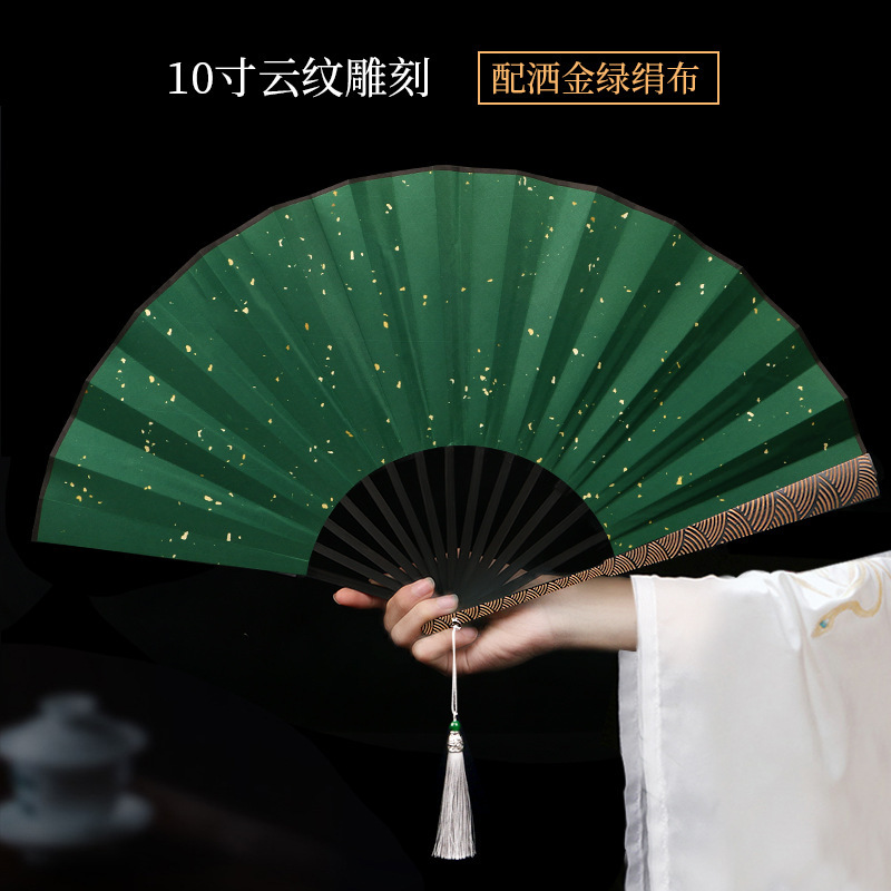 • 10inch 구름 조각 녹색 금 실크 부채 [무료 펜던트 상자] (문제 가능)☆