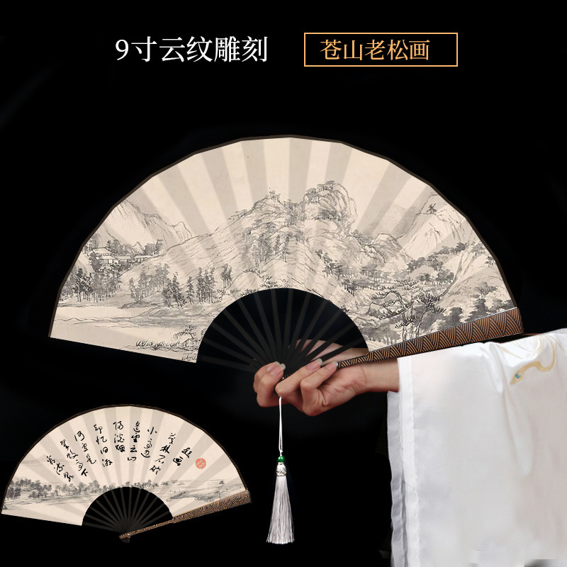 • 9inch 구름 조각 Cangshan Old Songzhu 실크 부채 [무료 펜던트 상자]☆