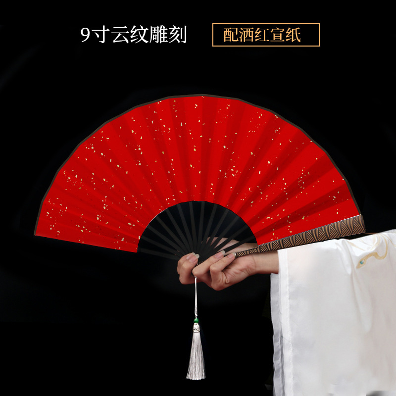 • 9inch 구름조각 붉은 금색 비단부채 [무료 펜던트 상자] (문제 가능)☆