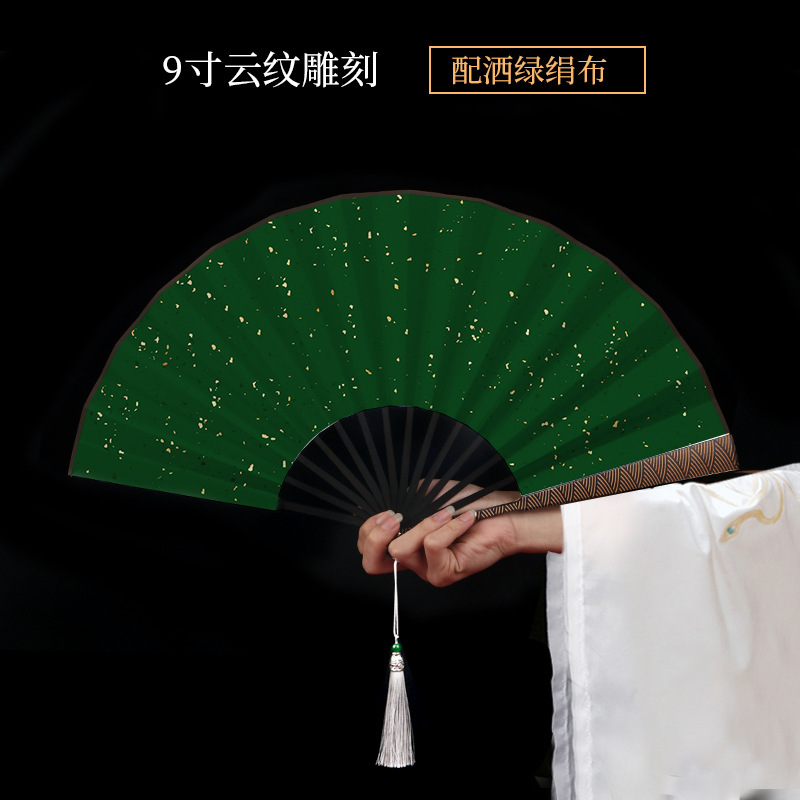 • 9inch 구름 조각 녹색 금 실크 부채 [무료 펜던트 상자] (문제 가능)☆