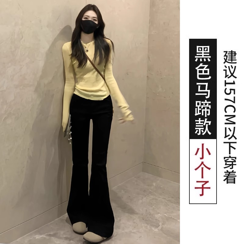 블랙 정장 플레어 팬츠 여성용 2025 봄 여름 하이웨이스트 슬림핏 키 작은 여성 요가 마이크로 플레어 팬츠 출퇴근용스토어 가기