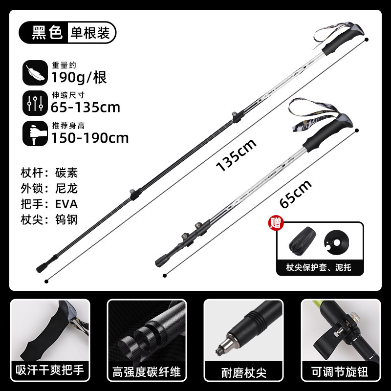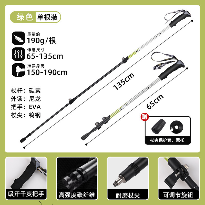 Kuang Tu 야외 전문 3 섹션 순수 탄소 섬유 잠금 텔레스코픽 클라이머 스틱 미끄럼 방지 클러치 스틱 텔레스코픽 클라이머 스틱스토어 가기