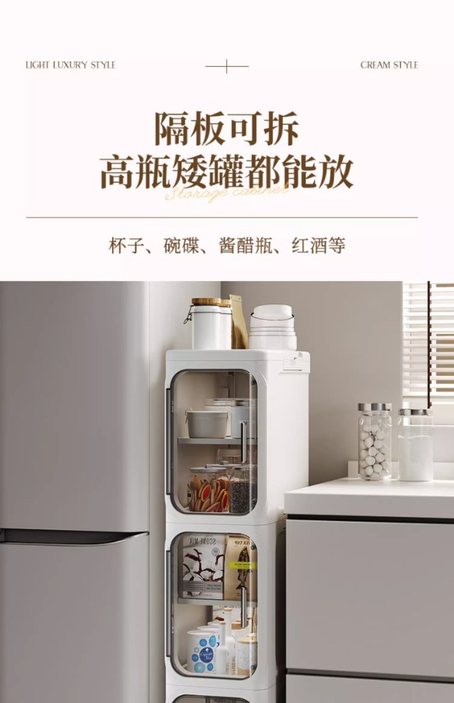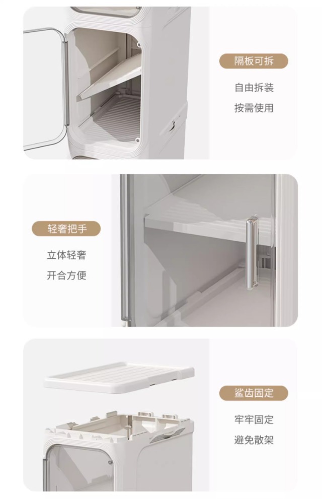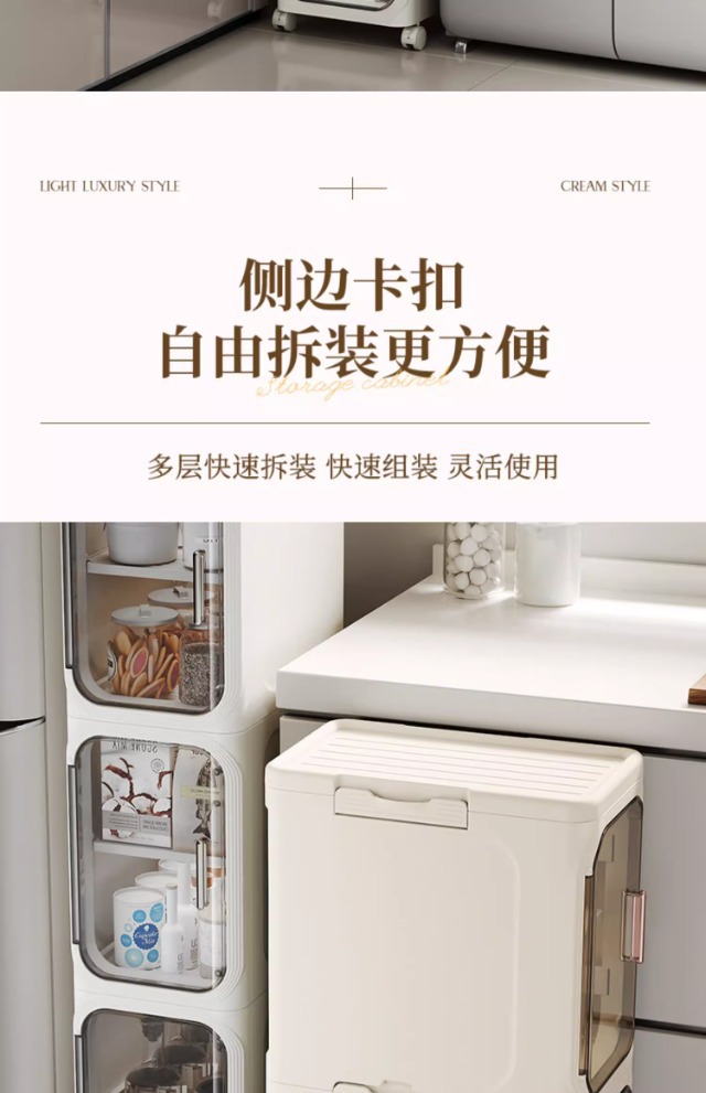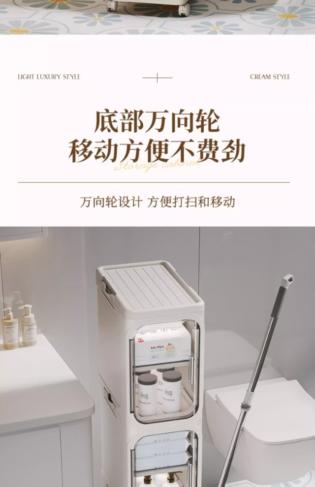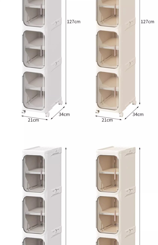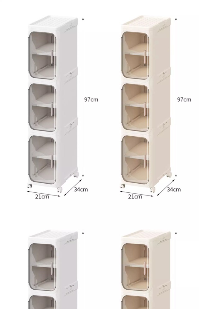 • 접이식 솔기 캐비닛 - 크림 - 4단 바퀴
