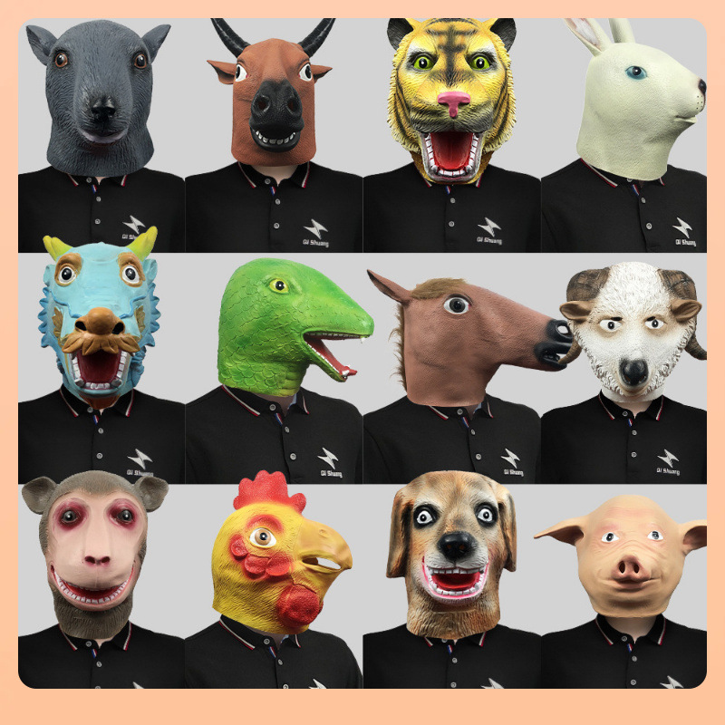 ✅귀여운 라이브 마스크 할로윈 파티 공연 도로 조디악 재미 동물 헤드 기어 가장 무도회스토어 가기