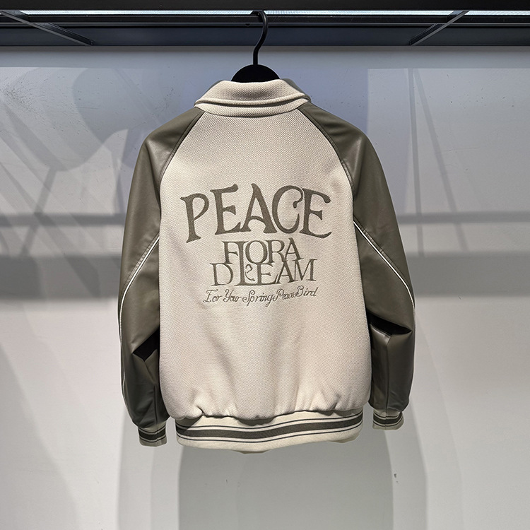 재킷 남자 코트 짧은 2025 봄 Lel 미국 패션 바느질 편지 자수 커플의 트렌디 탑스토어 가기