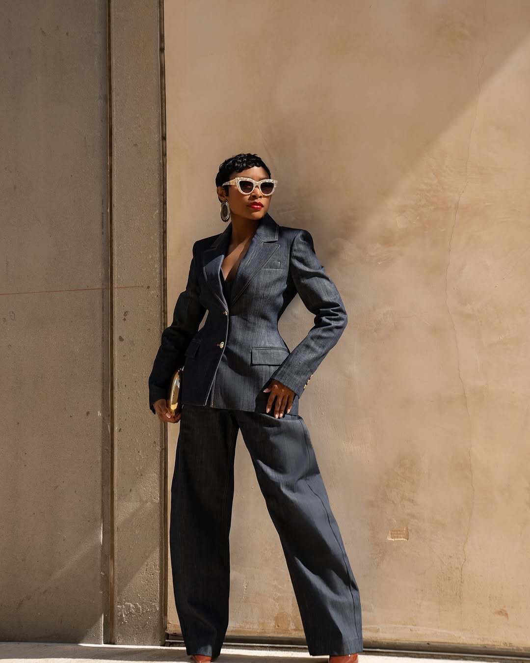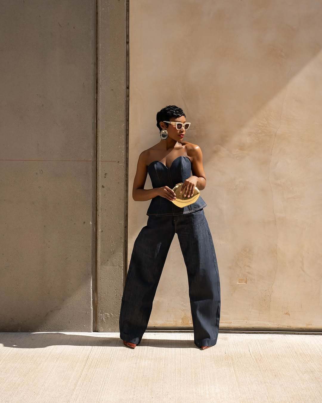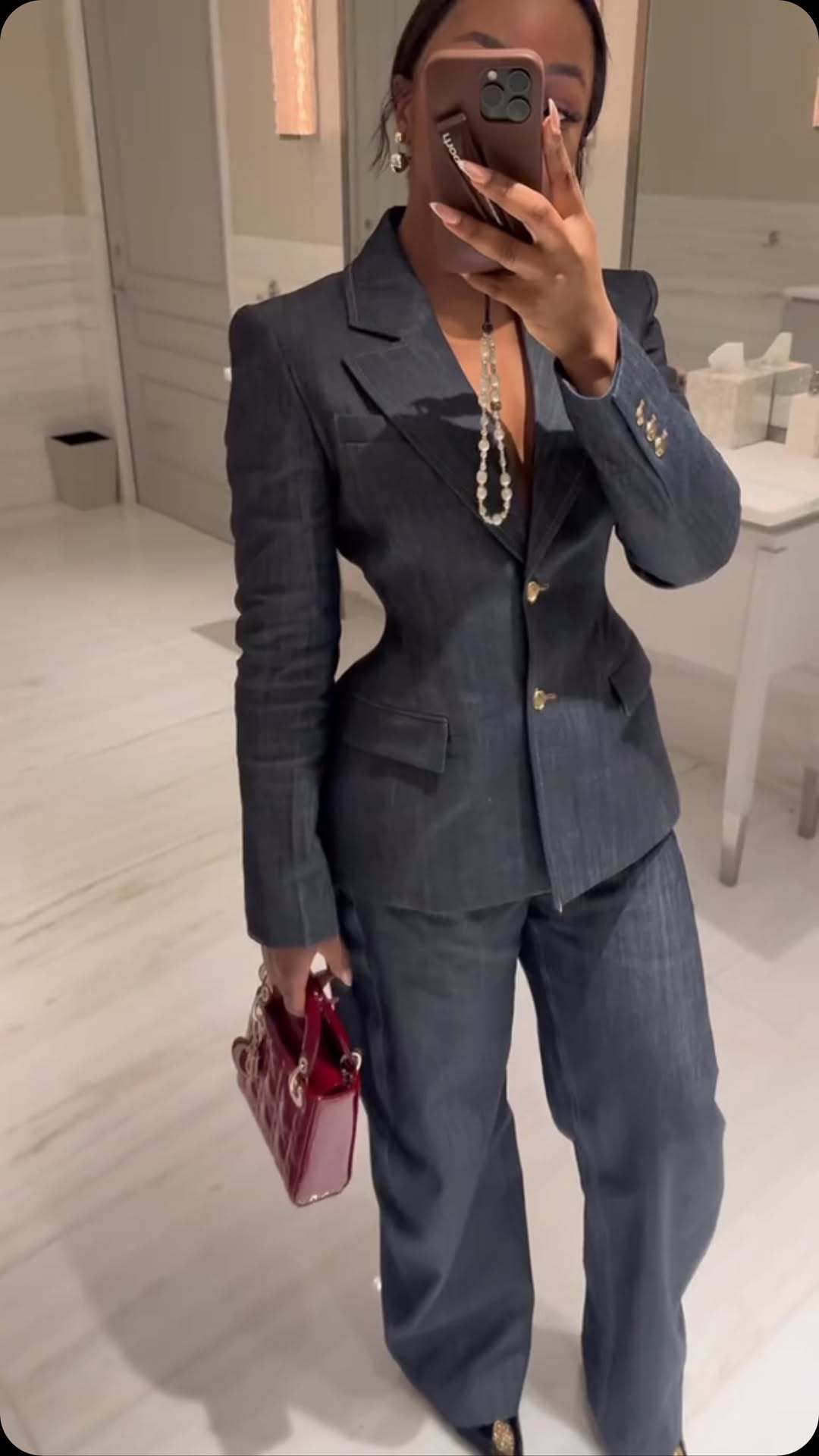 다크 블루 허리 자켓 끈이없는 조끼 청바지 3 피스 세트 2025 봄/여름 국경 간 폭발 데님 세트스토어 가기