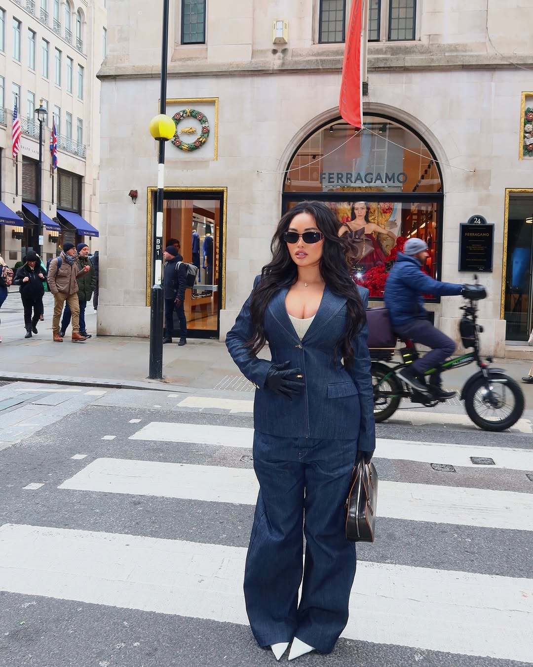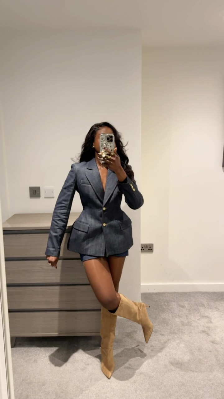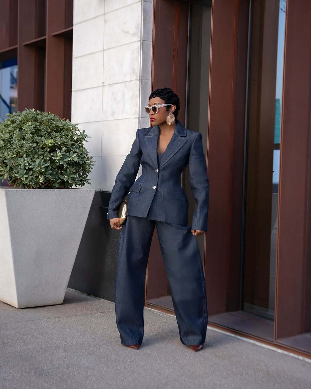 다크 블루 허리 자켓 끈이없는 조끼 청바지 3 피스 세트 2025 봄/여름 국경 간 폭발 데님 세트스토어 가기
