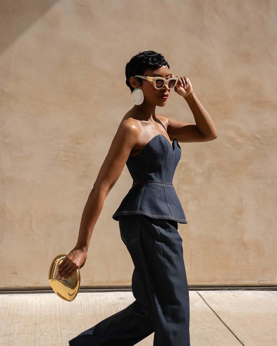다크 블루 허리 자켓 끈이없는 조끼 청바지 3 피스 세트 2025 봄/여름 국경 간 폭발 데님 세트
