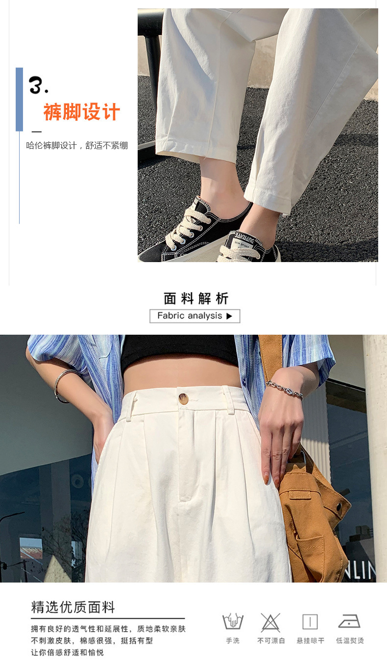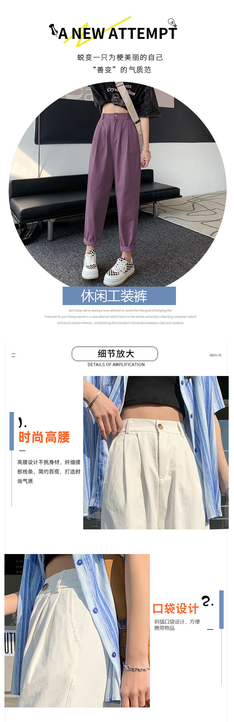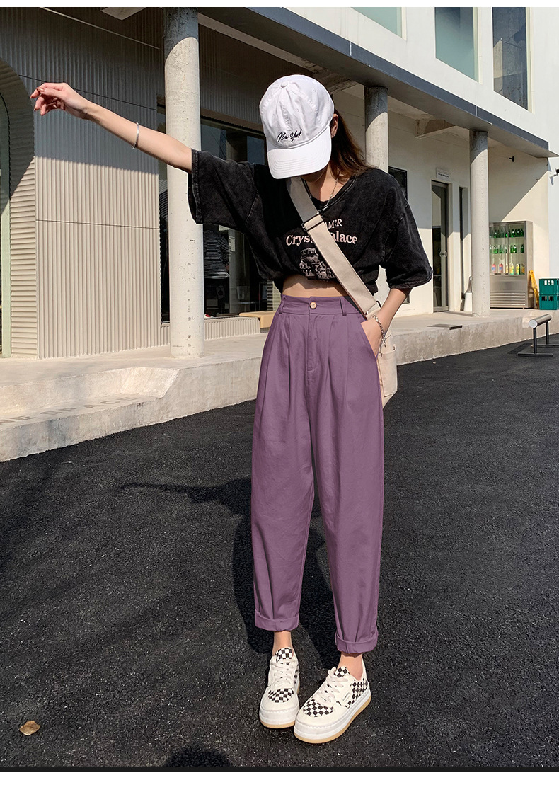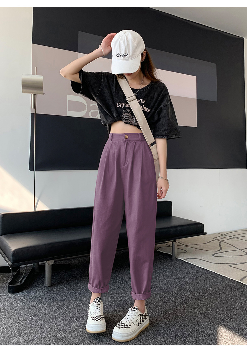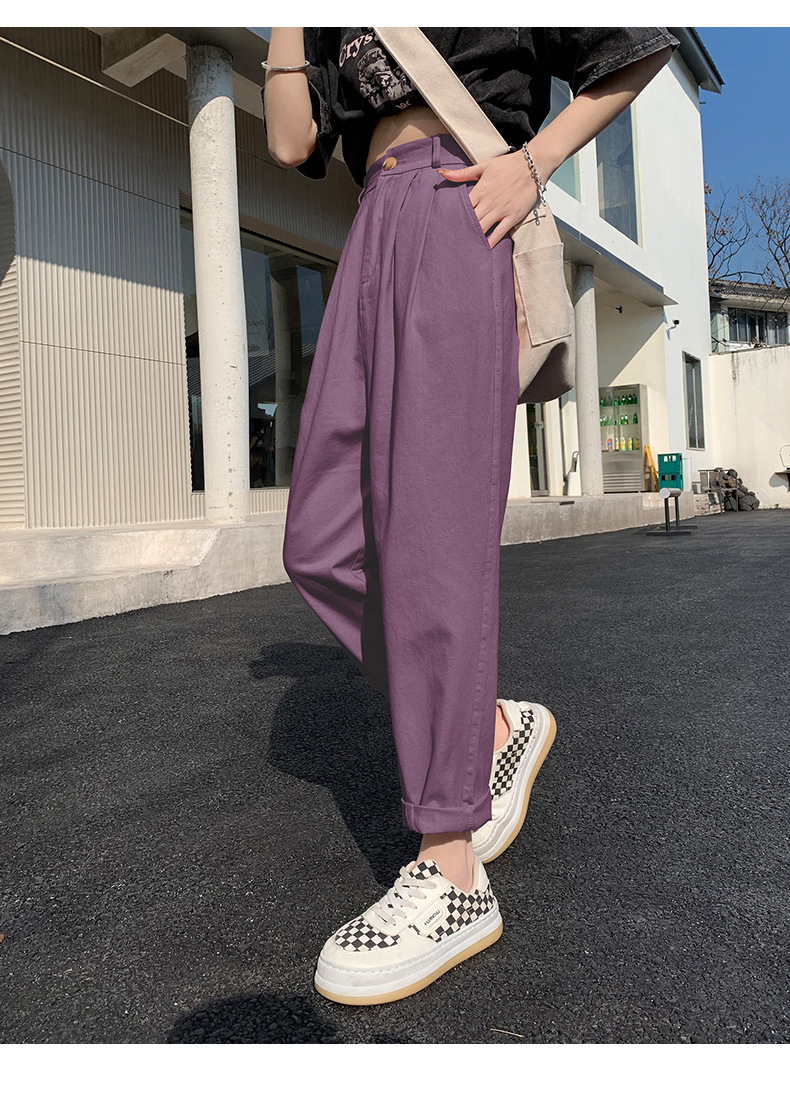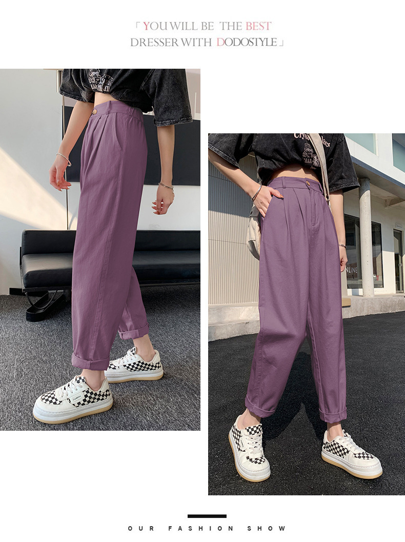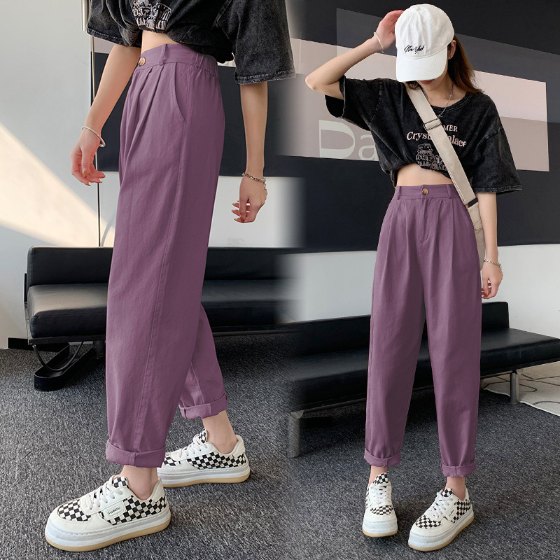日杂风紫色棉麻休闲阔腿裤女秋新款宽松显瘦直筒九分裤哈伦萝卜裤